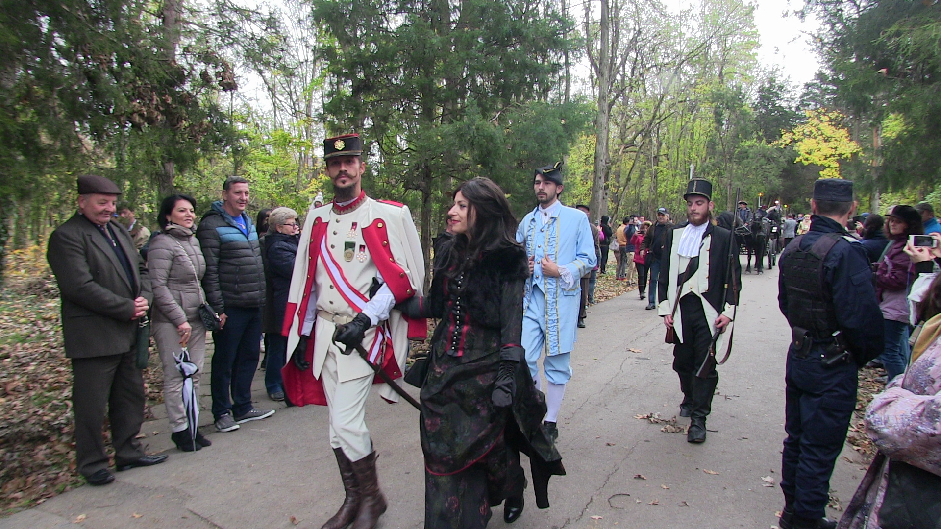 La miezul zilei, un alai impresionant, devansat de doi călăreți și trei calești, cu cuplul imperial, arhiduci și arhiducese – interpretat de actori cu ținute atent alese, a pornit spre locul inaugurării colonadei: intrarea principală, aceeași pe care erau primiți, în 1875, adevărații Franz Joseph I și Sissi. Tineri, dar chiar și bătrâni din Buziaș au ales să participe la acest eveniment în ținute de epocă.