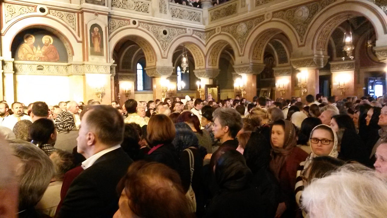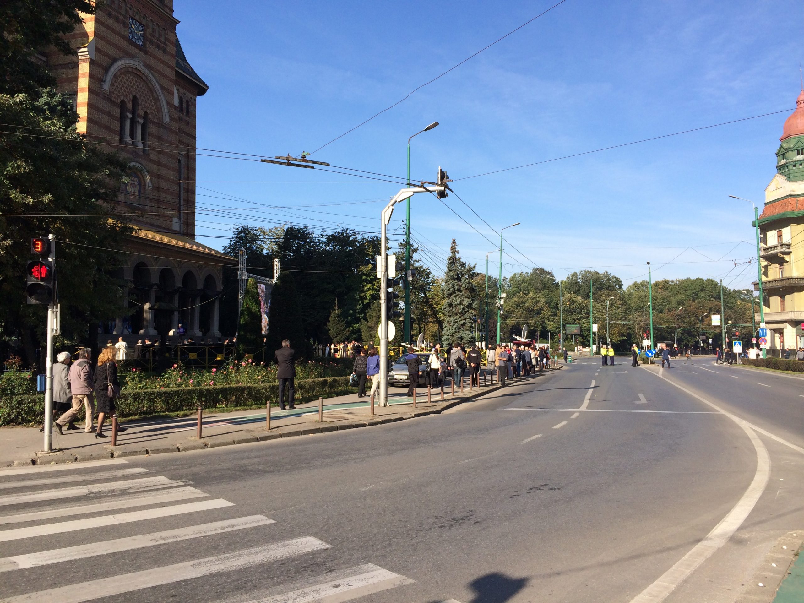 Traficul în centrul Timișoarei, blocat. Mii de oameni participă la slujba de la Catedrala Mitropolitană. Lăcașul de cult este arhiplin. O femeie a fost preluată de paramedici după ce i s-a făcut rău în timpul slujbei de la Catedrala Mitropolitană.