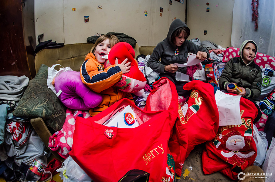 Fiecare dintre copilași a primit un sac plin cu cadouri: rechizite, hăinuțe călduroase, obiecte de igienă, sucuri, jucării și multe dulciuri. În plus, fiecare familie a primit câte un sac cu alimente neperisabile.