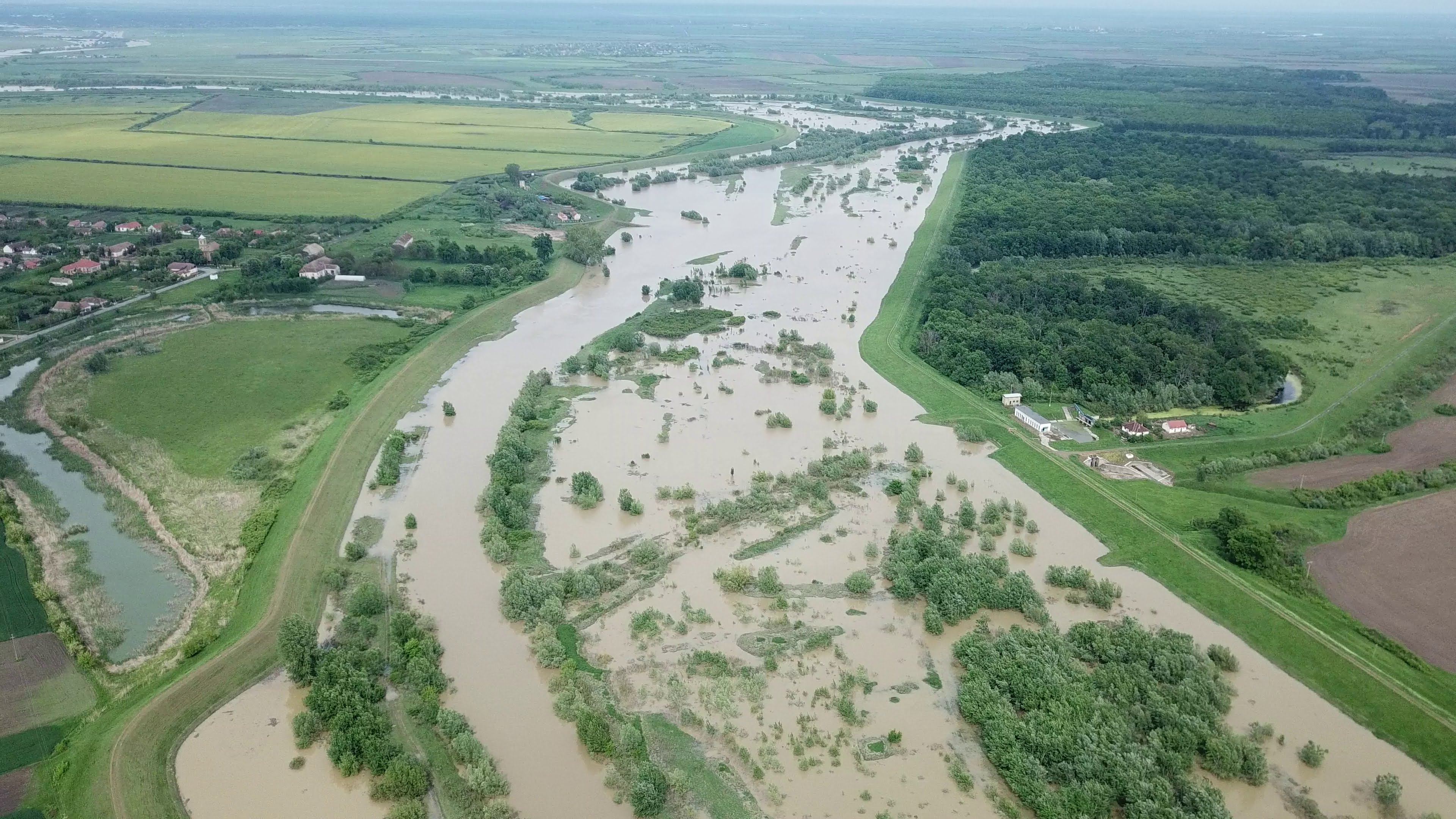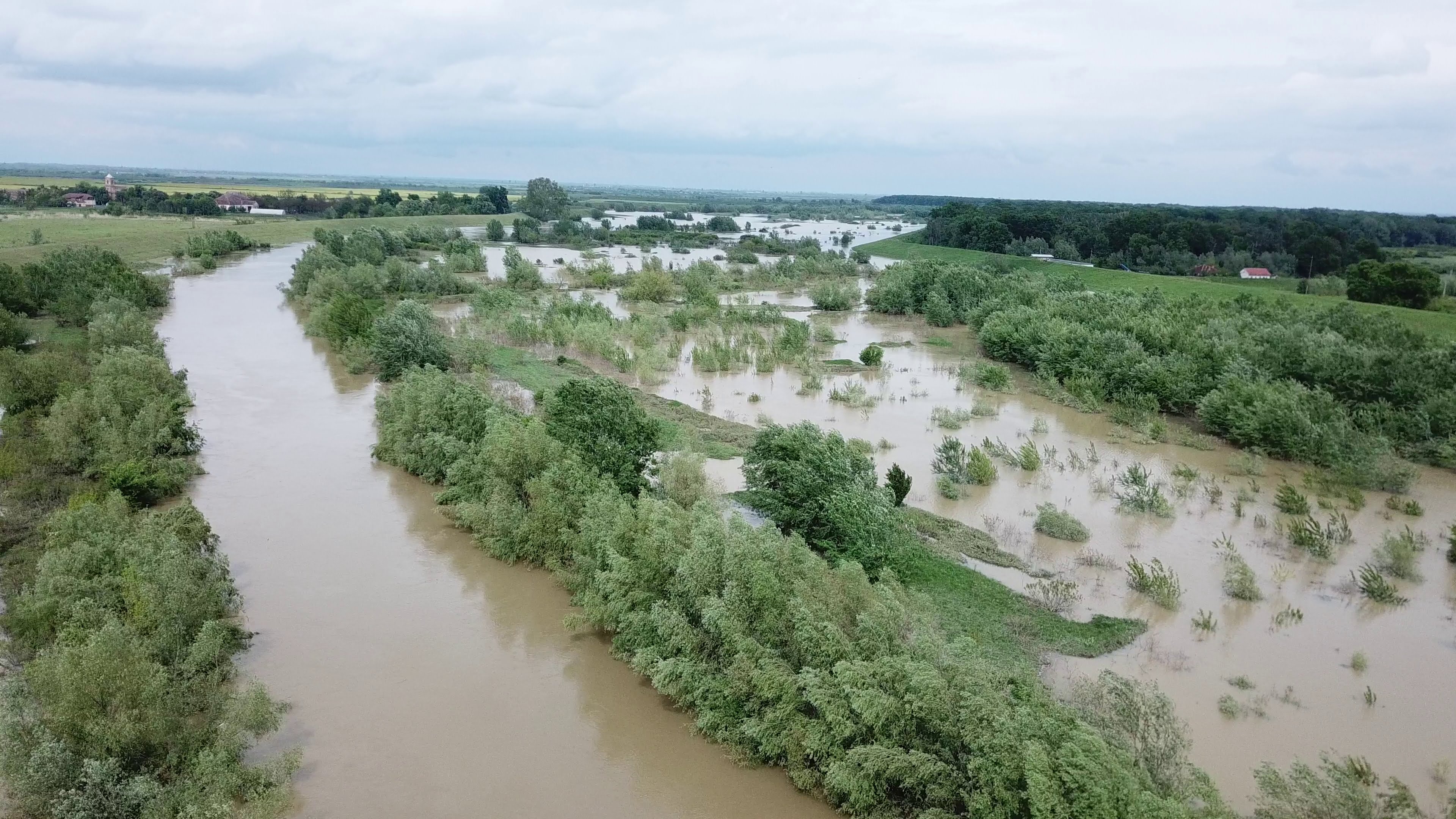 Foto: vedere de ansamblu asupra râului Timiș, în zona Rudna – Foeni, în data de 5 mai 2019