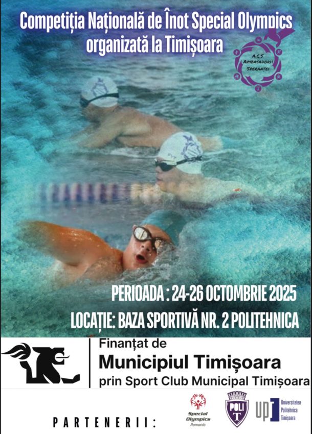 În perioada 24–26 octombrie, Timișoara găzduiește Competiția Națională de Înot Special Olympics, un eveniment dedicat sportivilor cu dizabilități intelectuale din întreaga țară.