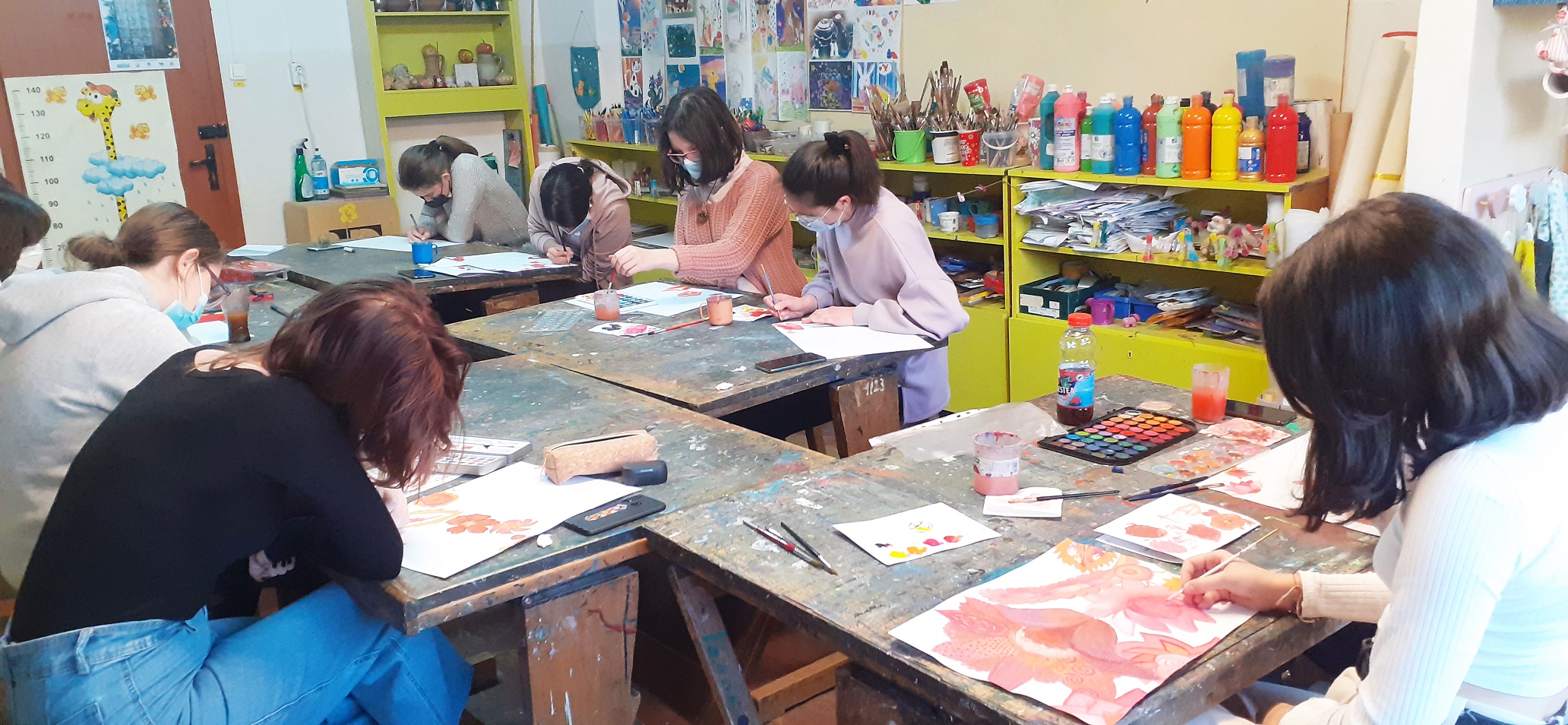 Cercul de pictură din cadrul Palatului Copiilor Timişoara, coordonat de prof. Daniela Scurtulescu, colorează la acest început de primăvară sufletele copiilor, părinţilor, doctorilor care păşesc în Clinica de Pediatrie Bega, prin expunerea unei lucrări pictate de mari dimensiuni, plină de optimism, flori şi bucurie motivaţională.