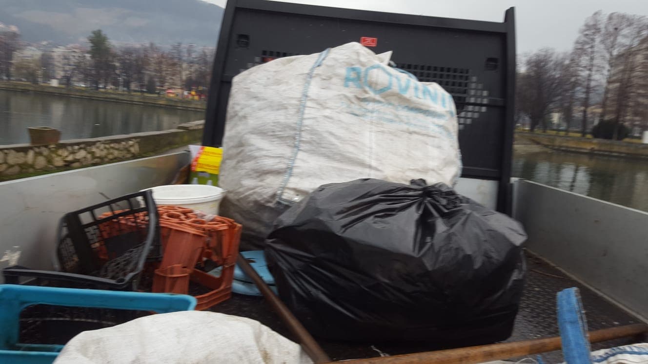 Două camioane de deșeuri adunate de pe malul Dunării, la Orșova