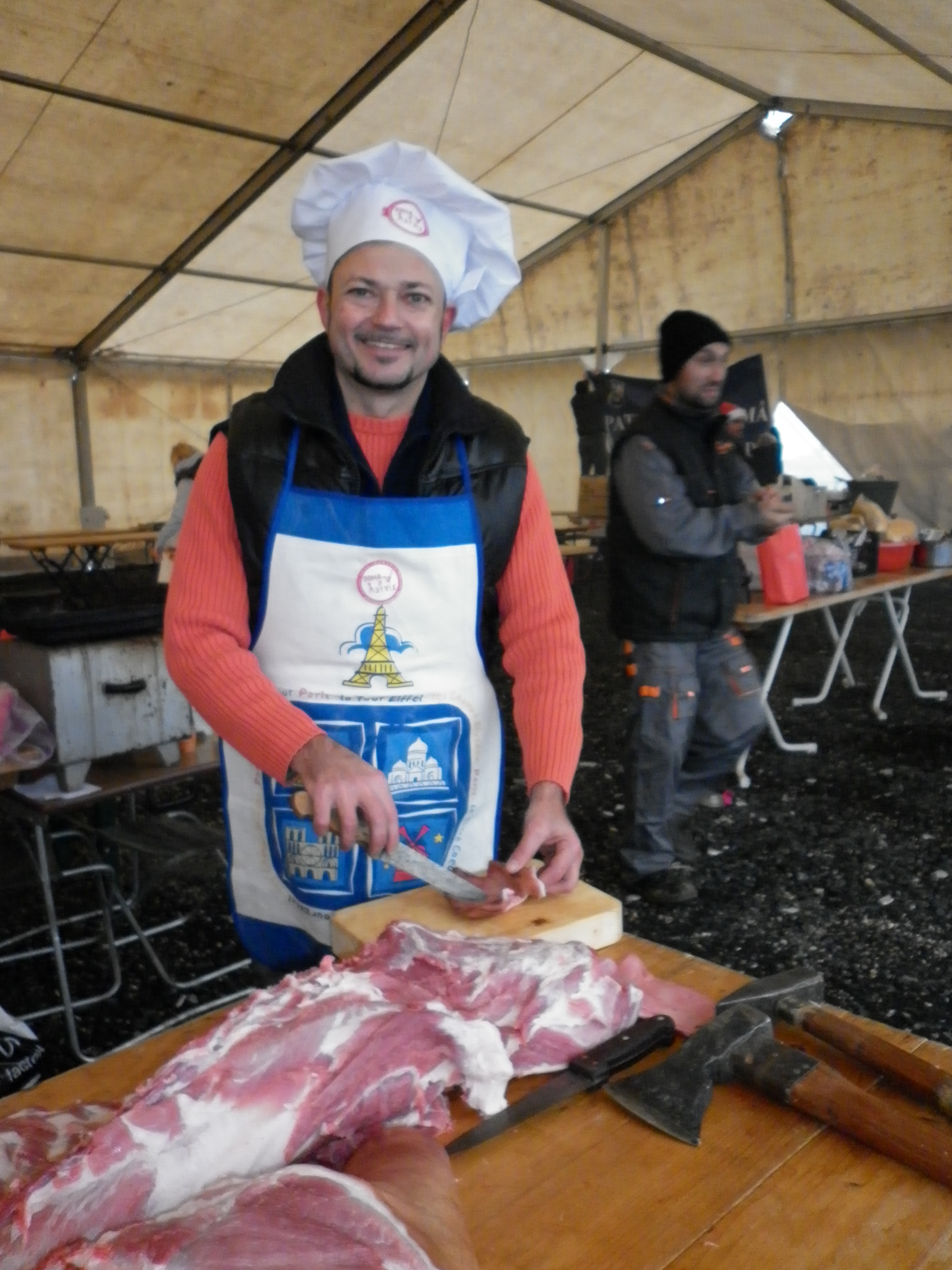 După sacrificarea porcului, echipele au început să prepare cârnați, jumări și caltabăși. Concursul s-a desfășurat într-o atmosferă întreținută de colinde și muzică de petrecere. Probele de foc, Jumara de aur, Caltaboșul anului și Cina porcului, sunt jurizate în cursul după-amiezei.