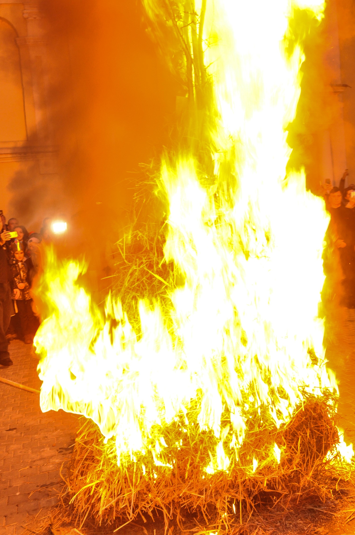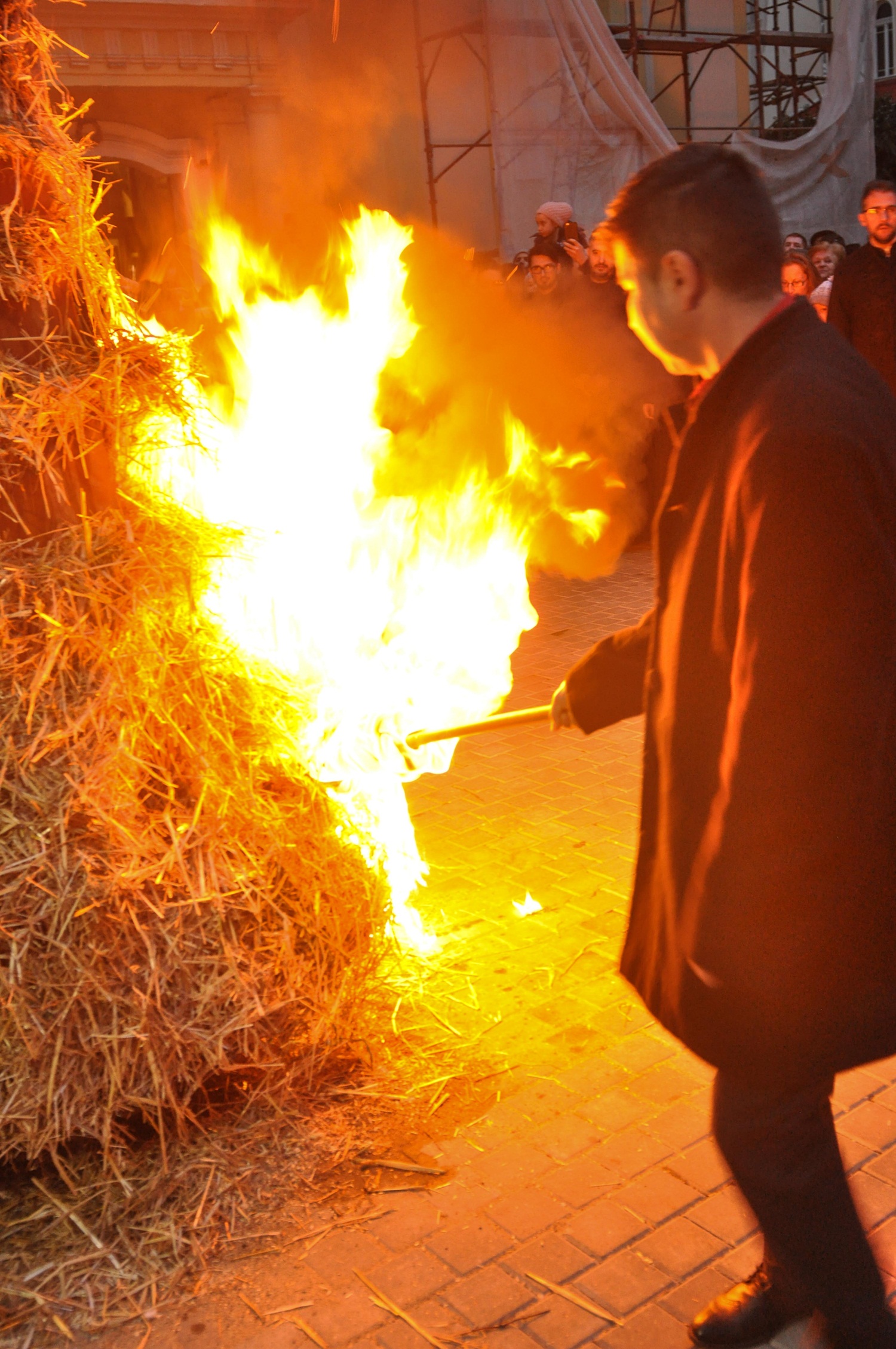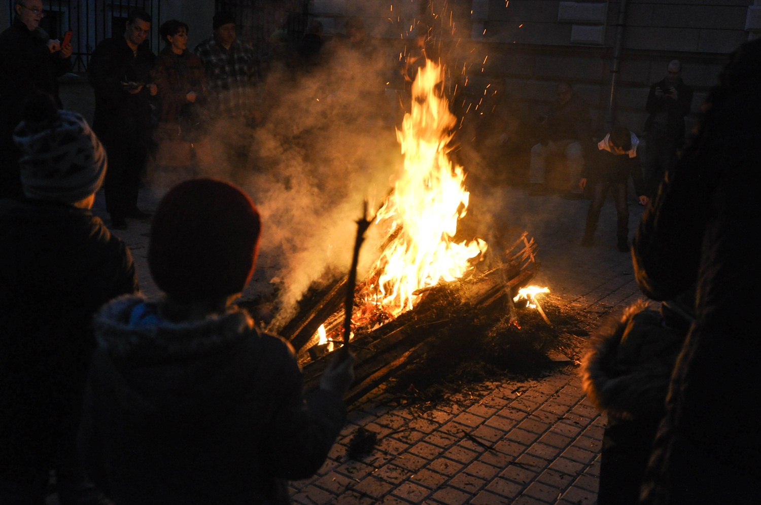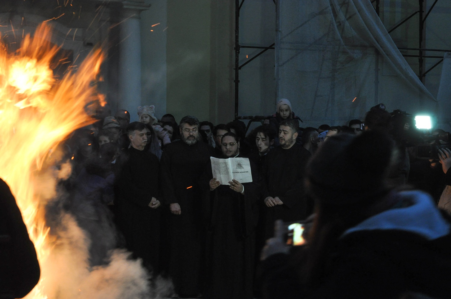 Trunchiul a fost aprins, în această după-amiază, în curtea Bisericii Sârbești din Piața Unirii. Focul reprezintă căldura iubirii lui Hristos, iar tradiţia spune că numărul mare al scânteilor provocate de arderea lemnului semnifică şi bogăţia din casa respectivă, pentru anul care vine.