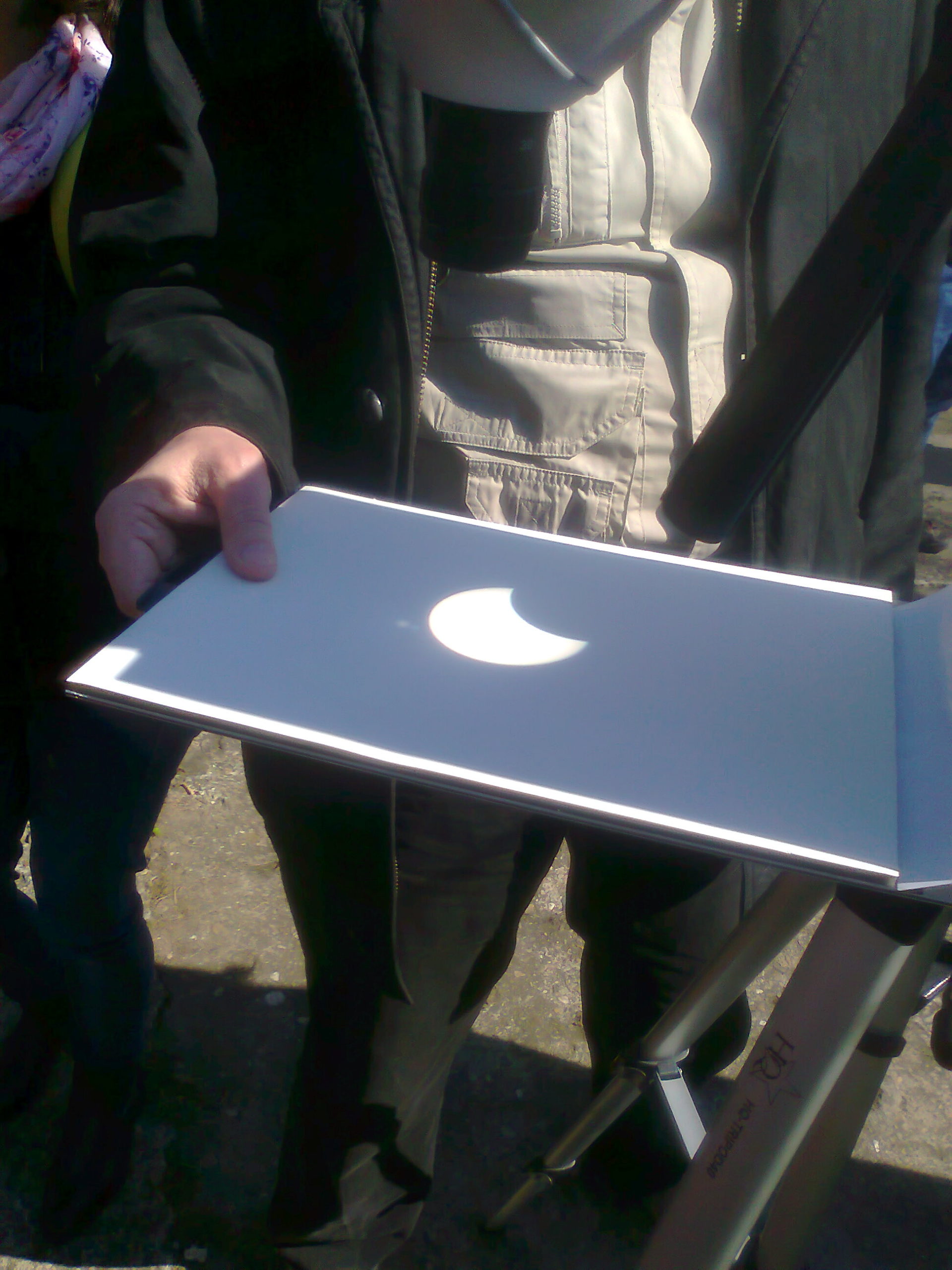 Pentru cei care nu au avut la dispoziţie echipament special, organizatorii dar şi astronomii amatori au proiectat eclipsa, cu ajutorul telescoapelor, pe coli de hârtie sau ecrane. Doru Drăgan şi-a folosit propriul telescop.