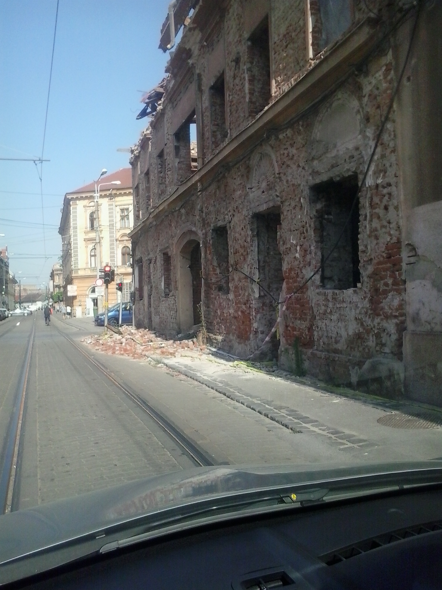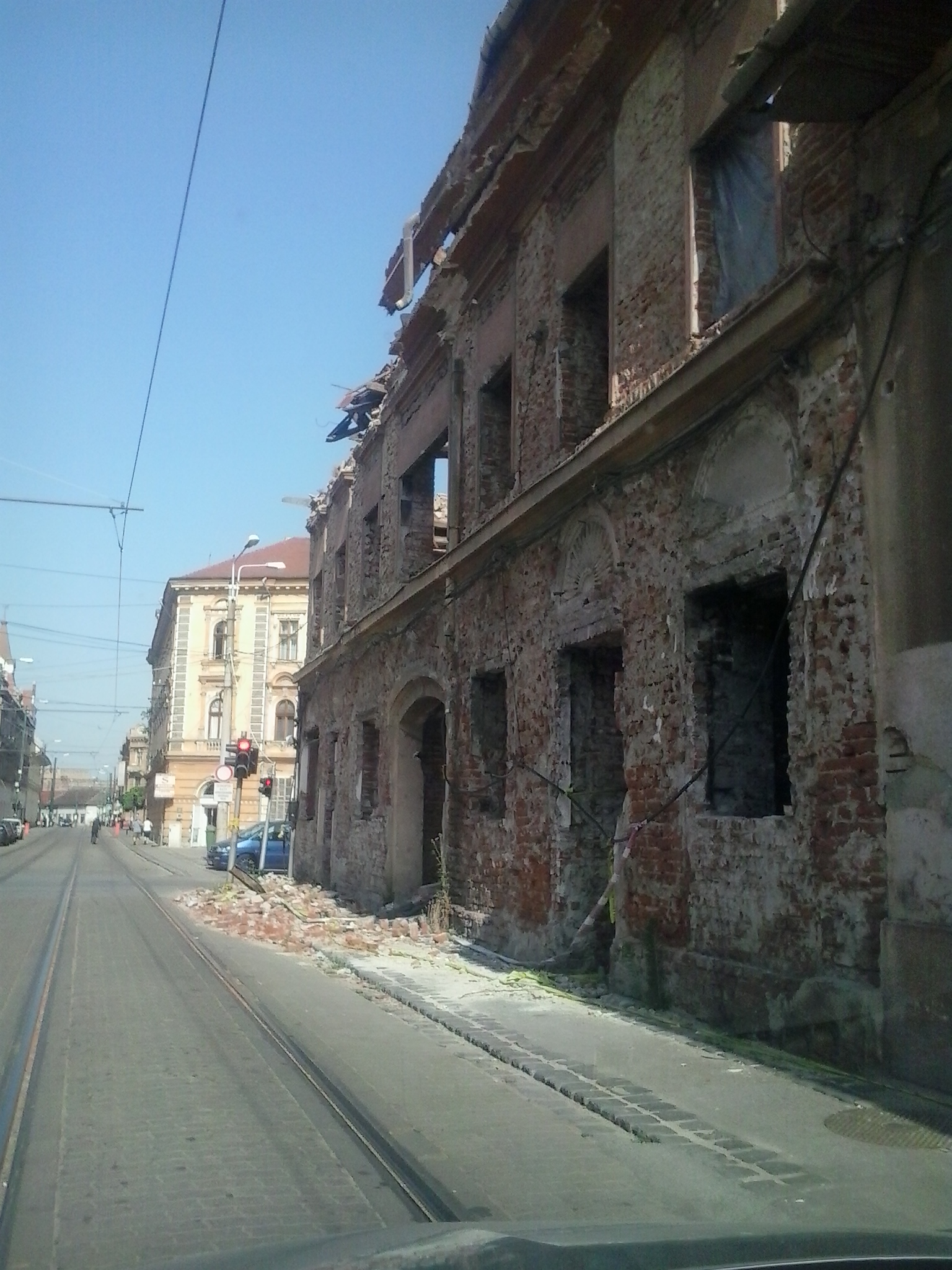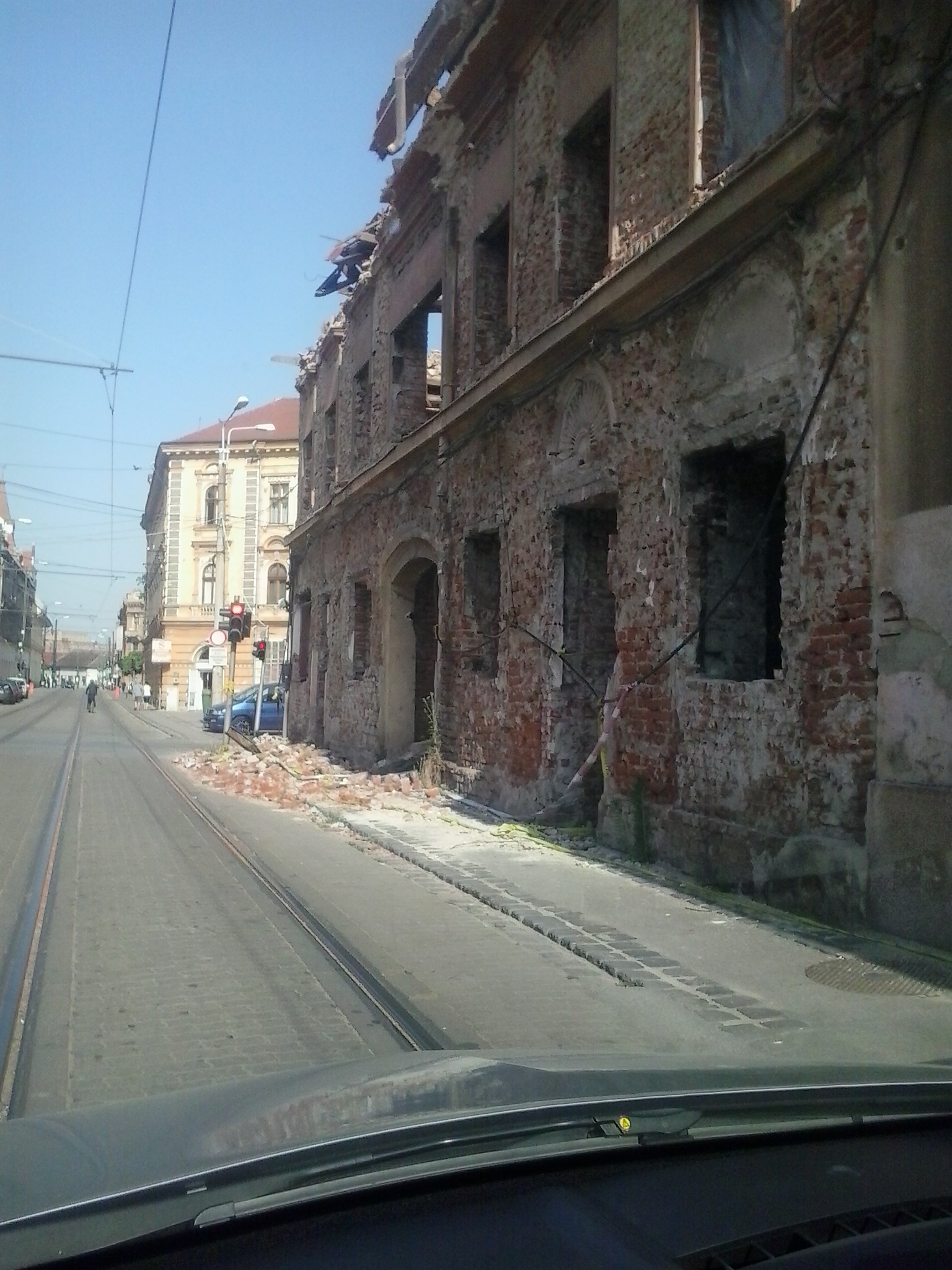 ‘Se va lăsa cu victime!’ Este avertismentul timişorenilor care sunt nevoiţi să treacă prin zona Ion Mihalache. Clădirea situată la intersecţia străzii Ion Mihalache cu strada Ion Titel Petrescu din Timişoara a început să se prăbuşească. Mai multe bucăţi din acoperiş au căzut pe stradă, acoperind trotuarul, pană în vecinătatea liniei tramvaielor 1 şi 2. Locul a devenit periculos iar simpla trecere prin prejma acestei clădiri constituie deja o aventură!