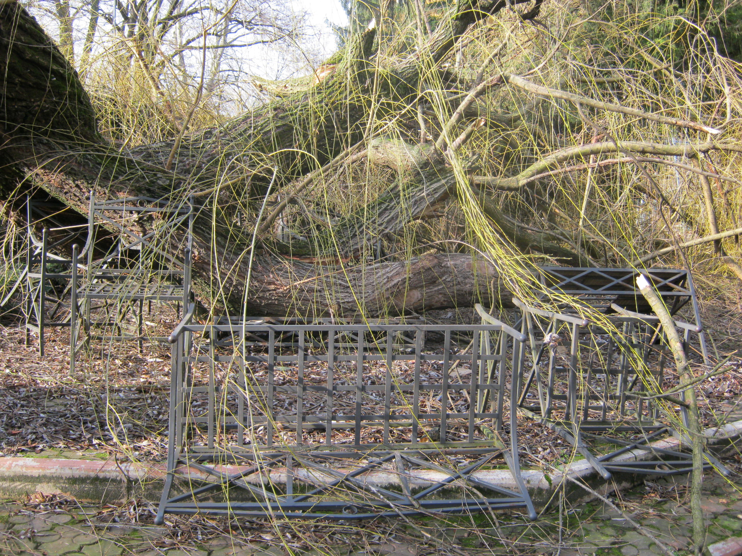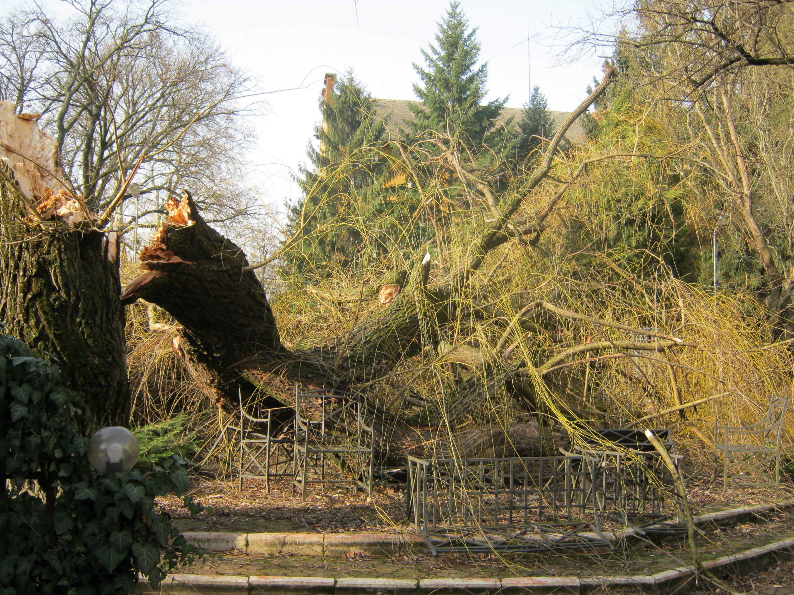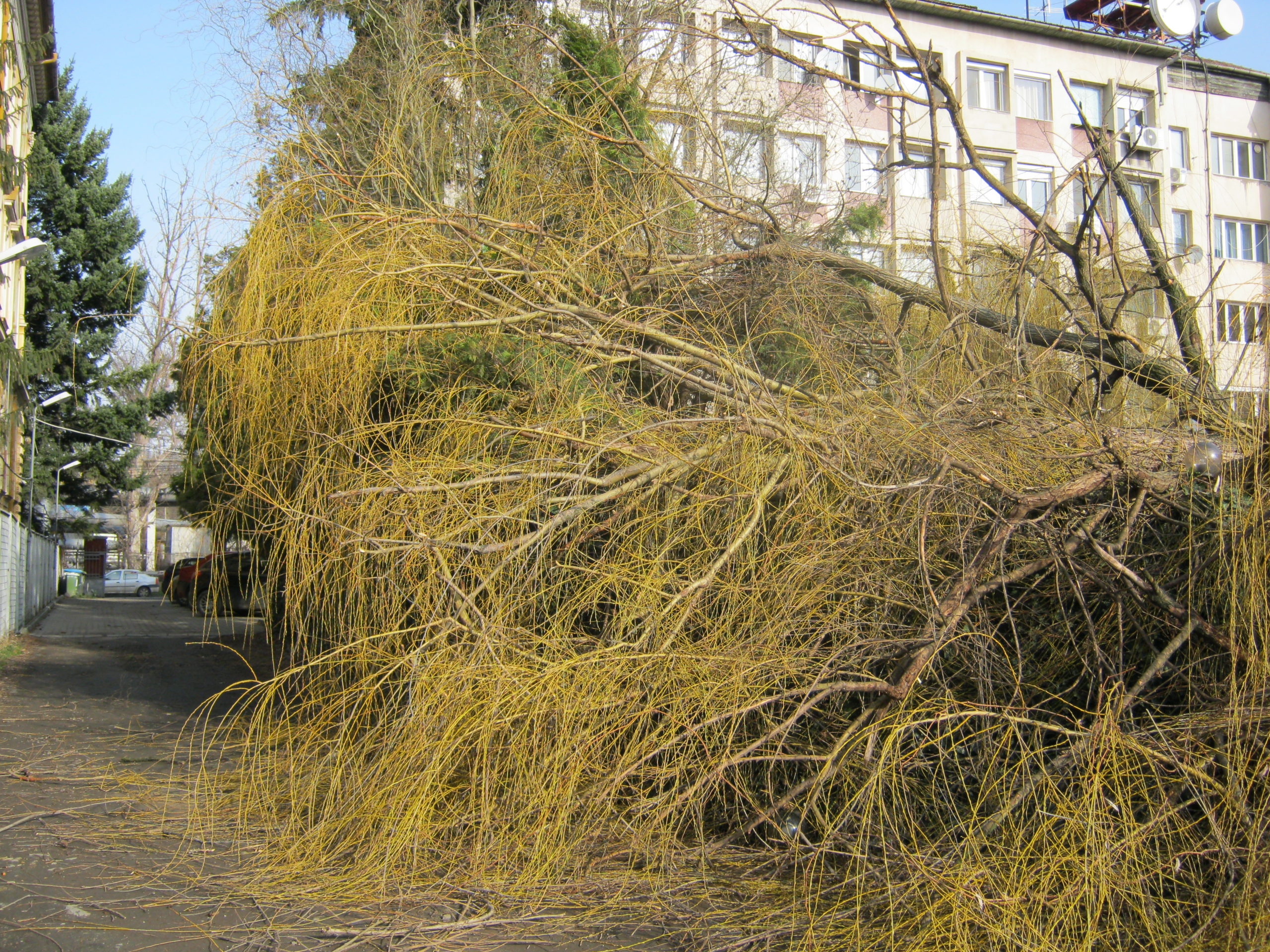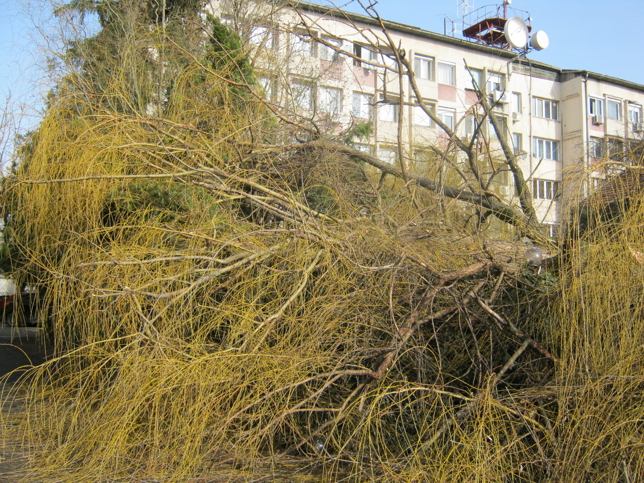 Vântul puternic a făcut ravagii și în curtea Radio Timișoara unde o salcie impresionantă a fost ruptă în urma rafalelor de vânt (foto).