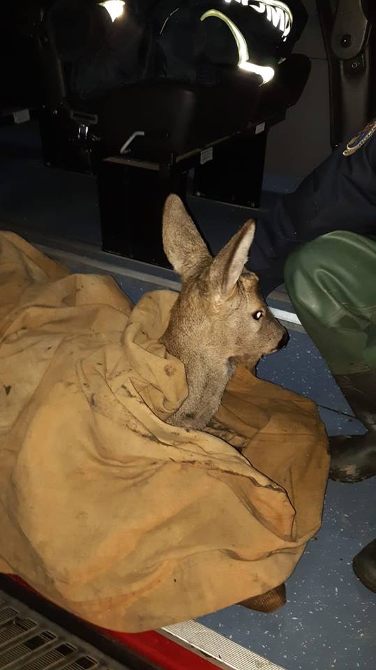 Odată scoasă din noroi, căprioara a fost curățată şi apoi verificată de un veterinar, după care a fost eliberată pe câmp.