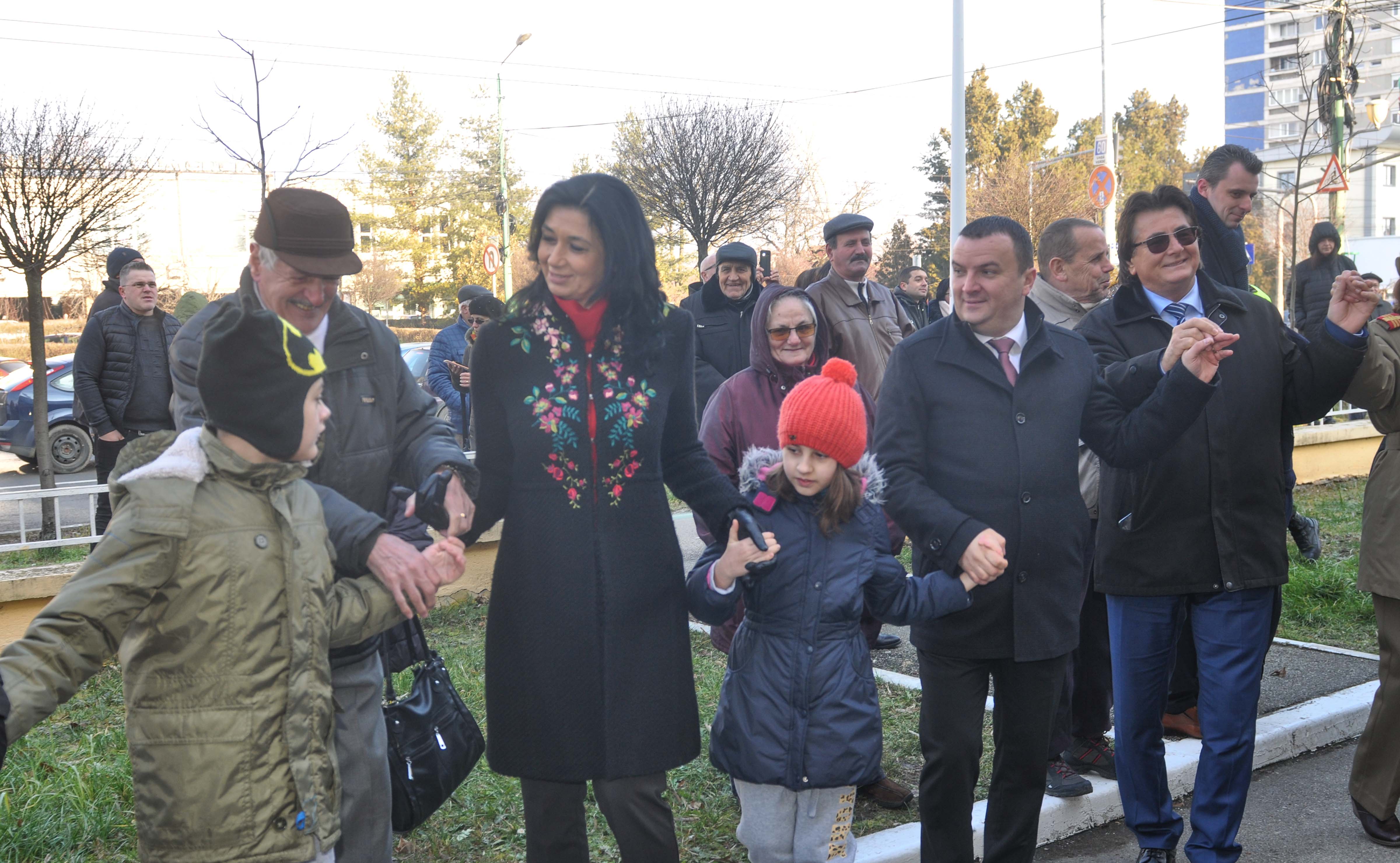 Festivităţile au cuprins o ceremonie militară şi religioasă şi depuneri de coroane de flori. Apoi autorităţile locale şi timişorenii s-au prins într-o Horă a Unirii.