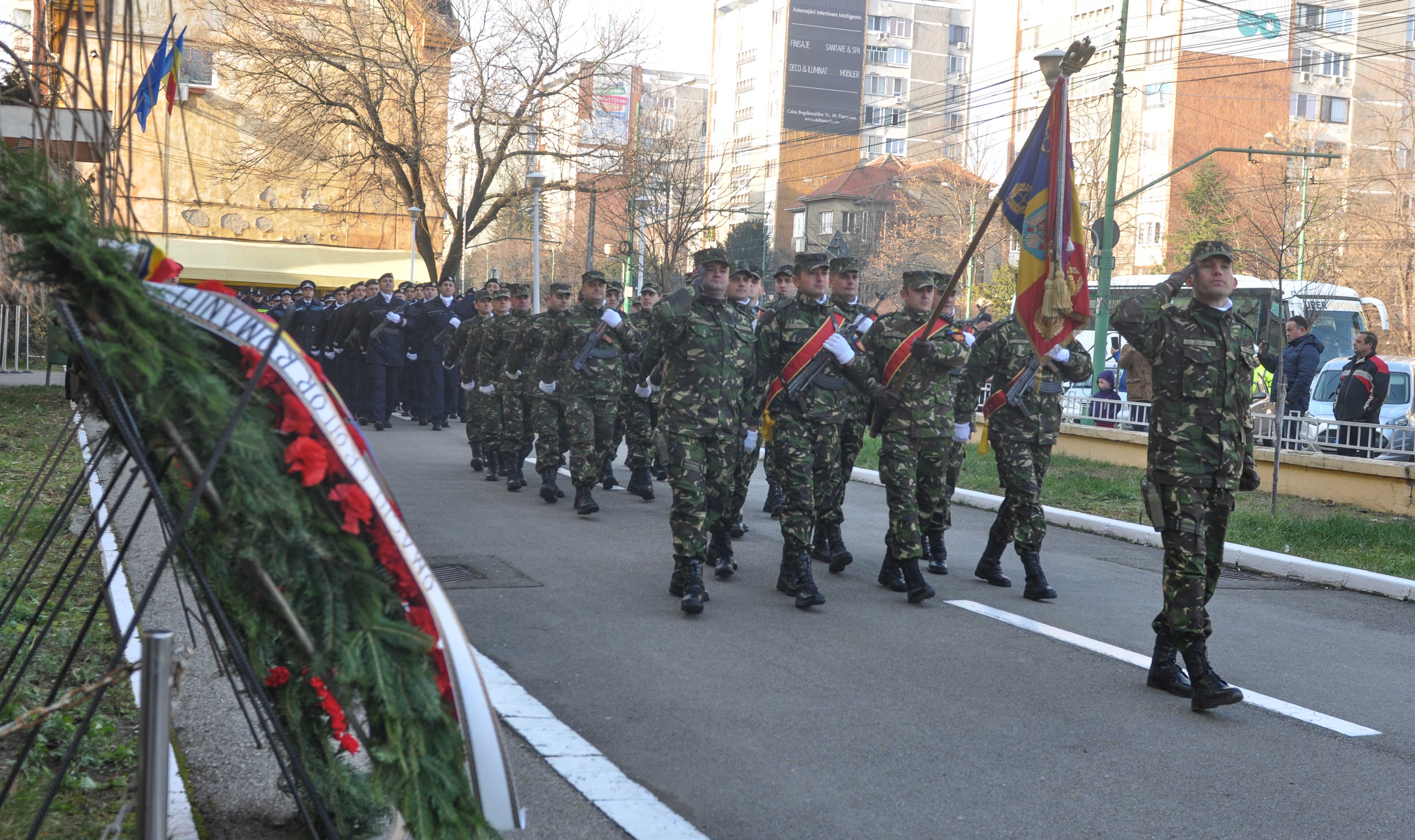 FOTO/ Hora Unirii şi defilare militară, la Timişoara