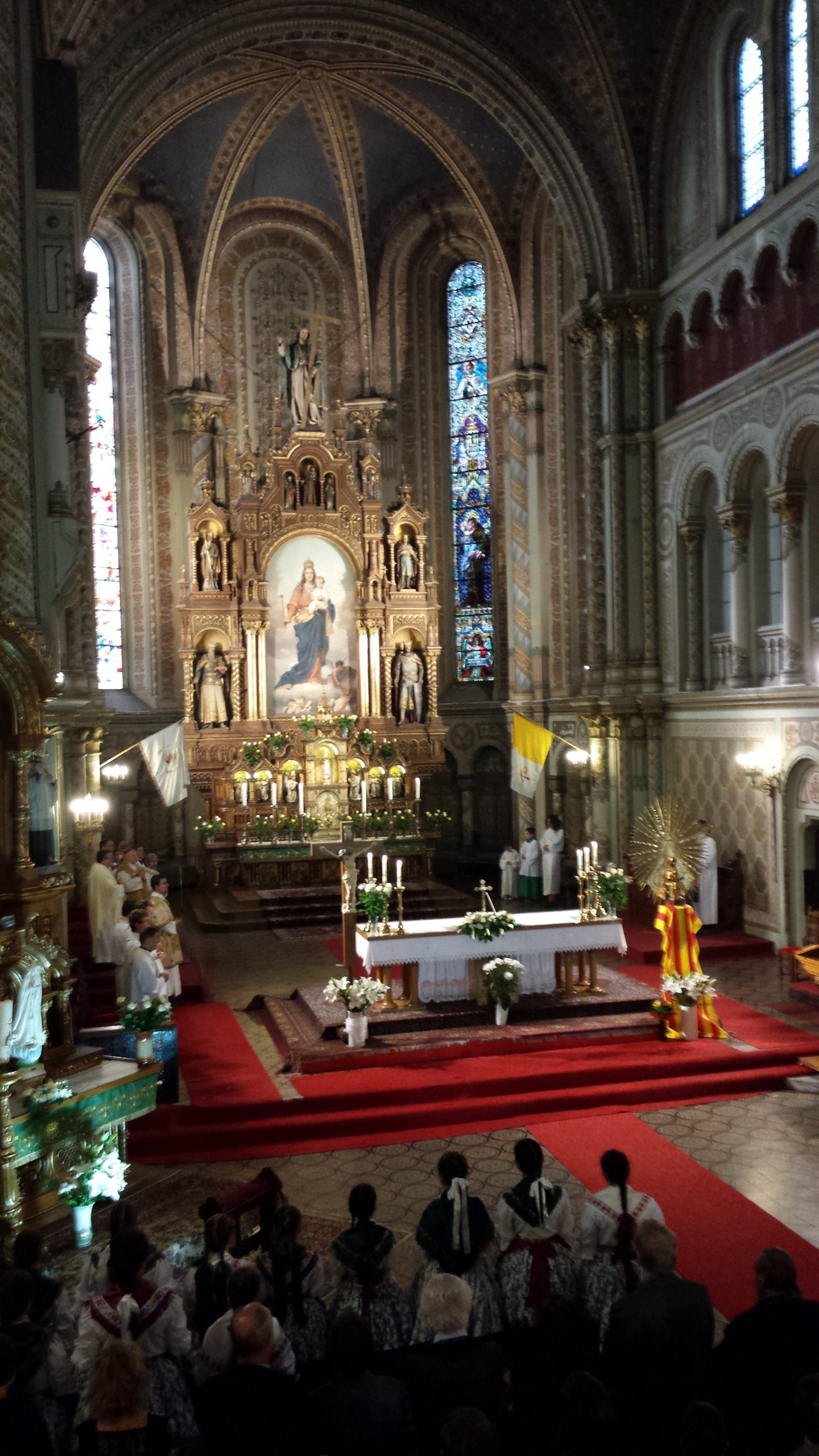 Slujbele, în limba română de la ora 10:00 și în maghiară de la ora 11:30, au fost celebrate de Preasfinţitul József Tamás, Episcop Auxiliar al Arhidiecezei Romano-Catolice de Alba-Iulia.