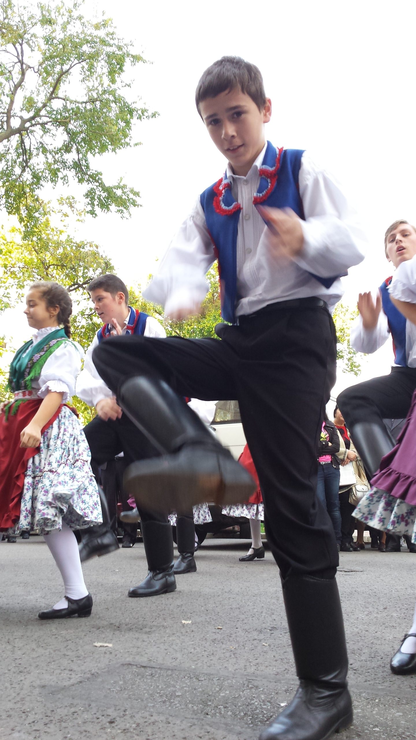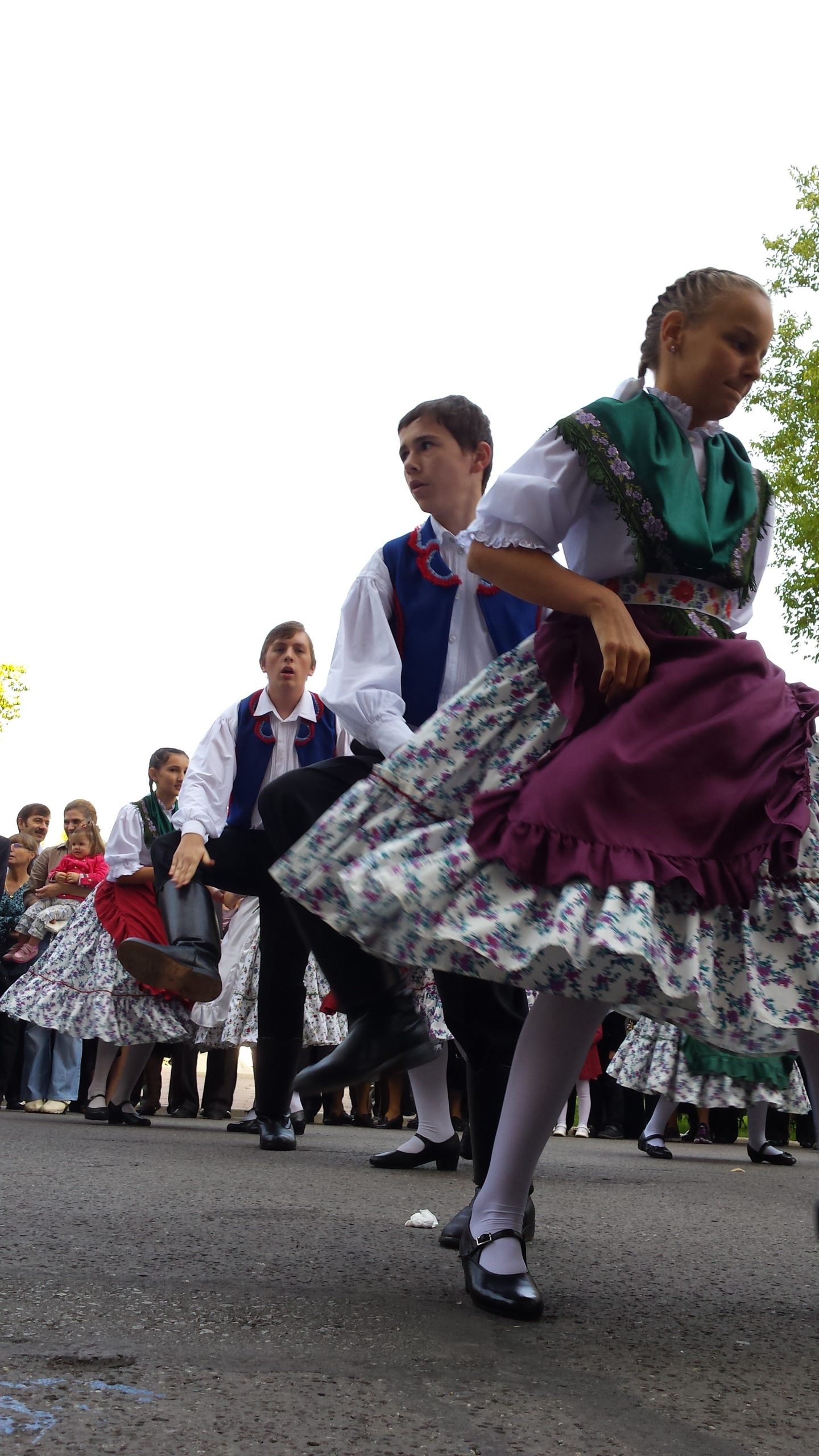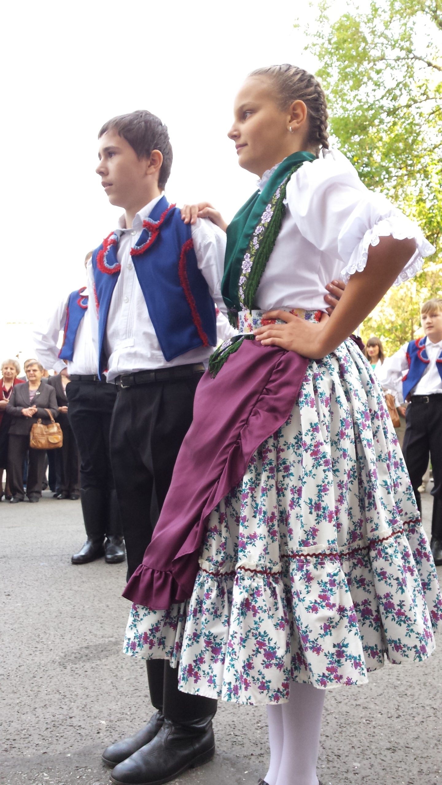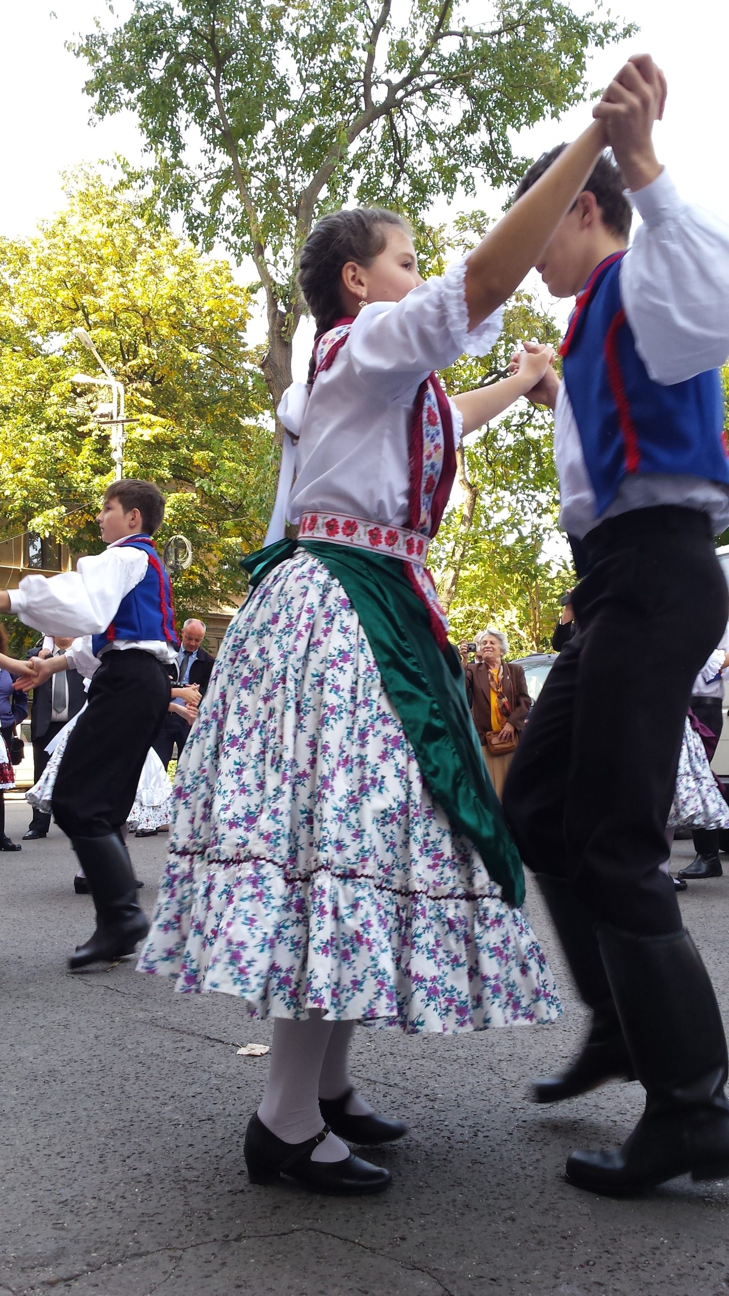 După slujbă, elevii liceului ”Bartok Bela” din Timișoara au prezentat un scurt program de dansuri populare în fața bisericii.