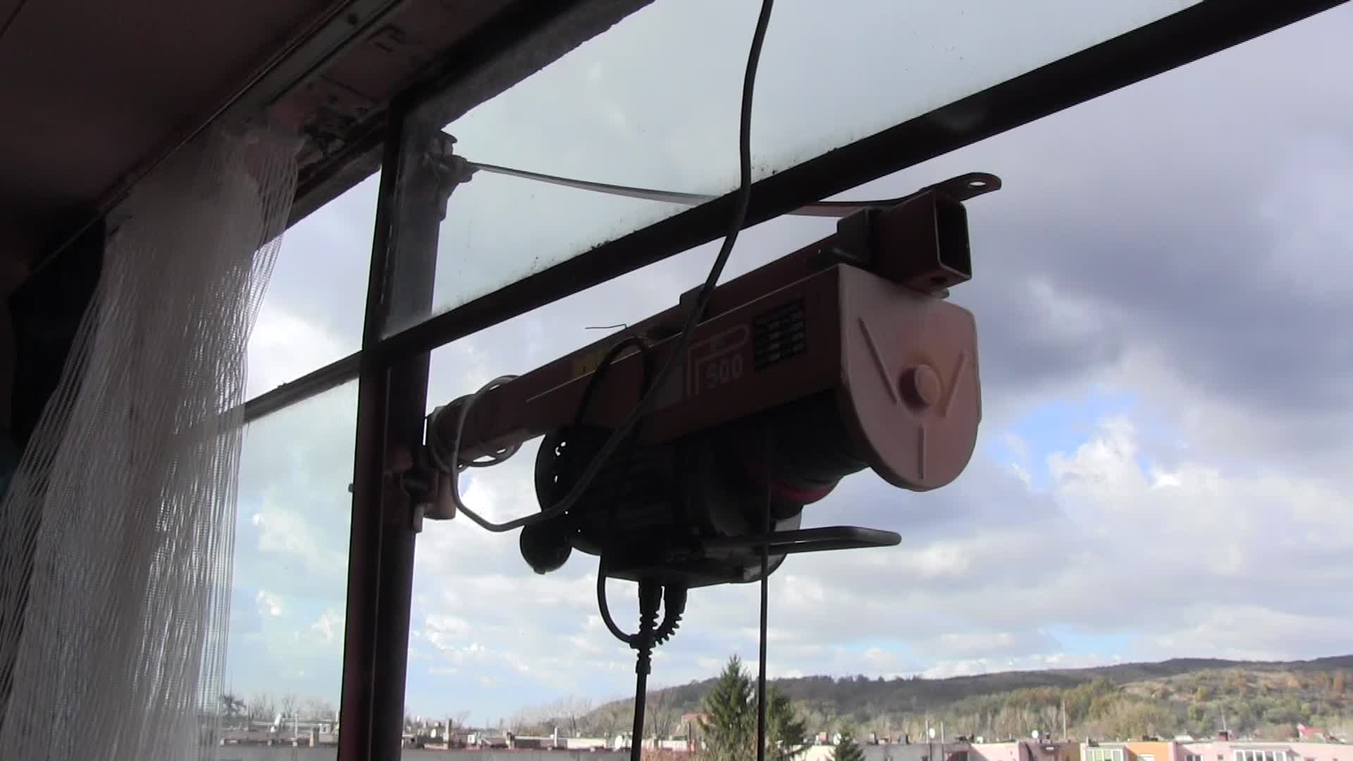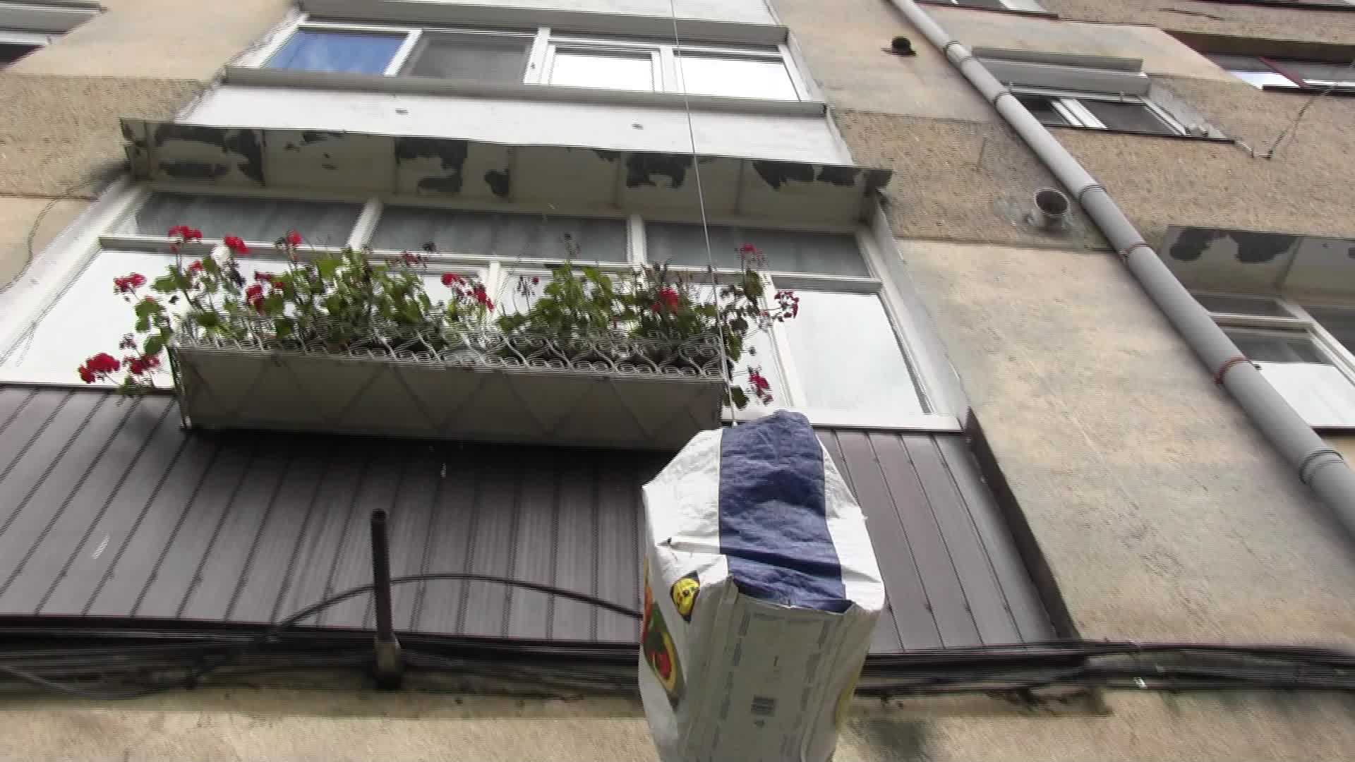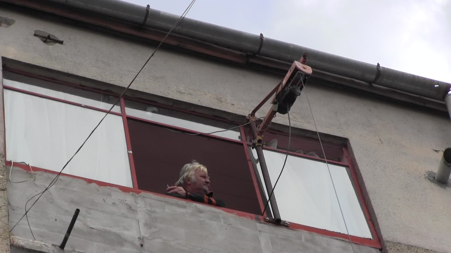 FOTO/ La oraș ca la sat. Locuitorii blocurilor din Lipova, nevoiți să care lemnele la etaj cu scripetele