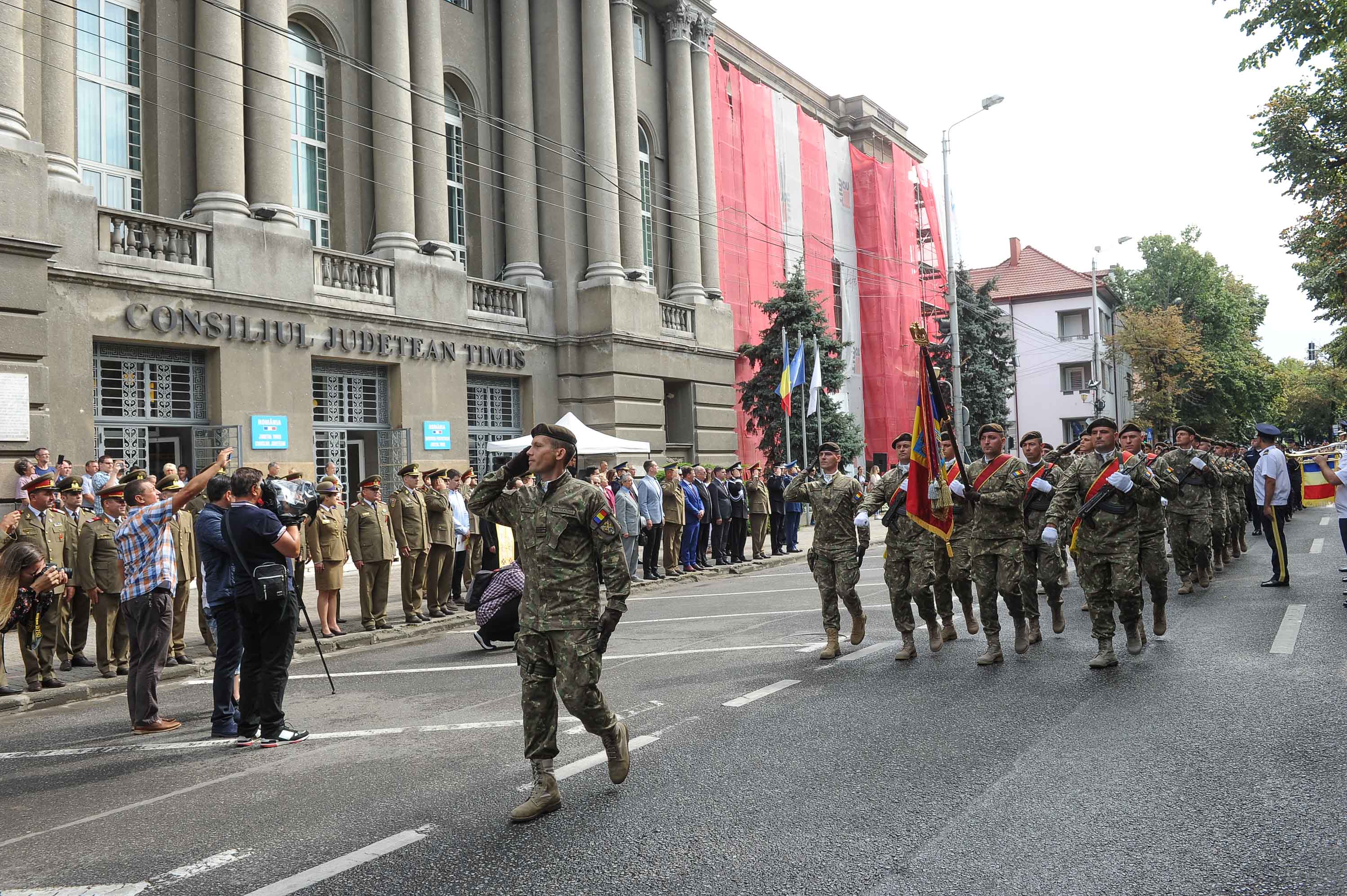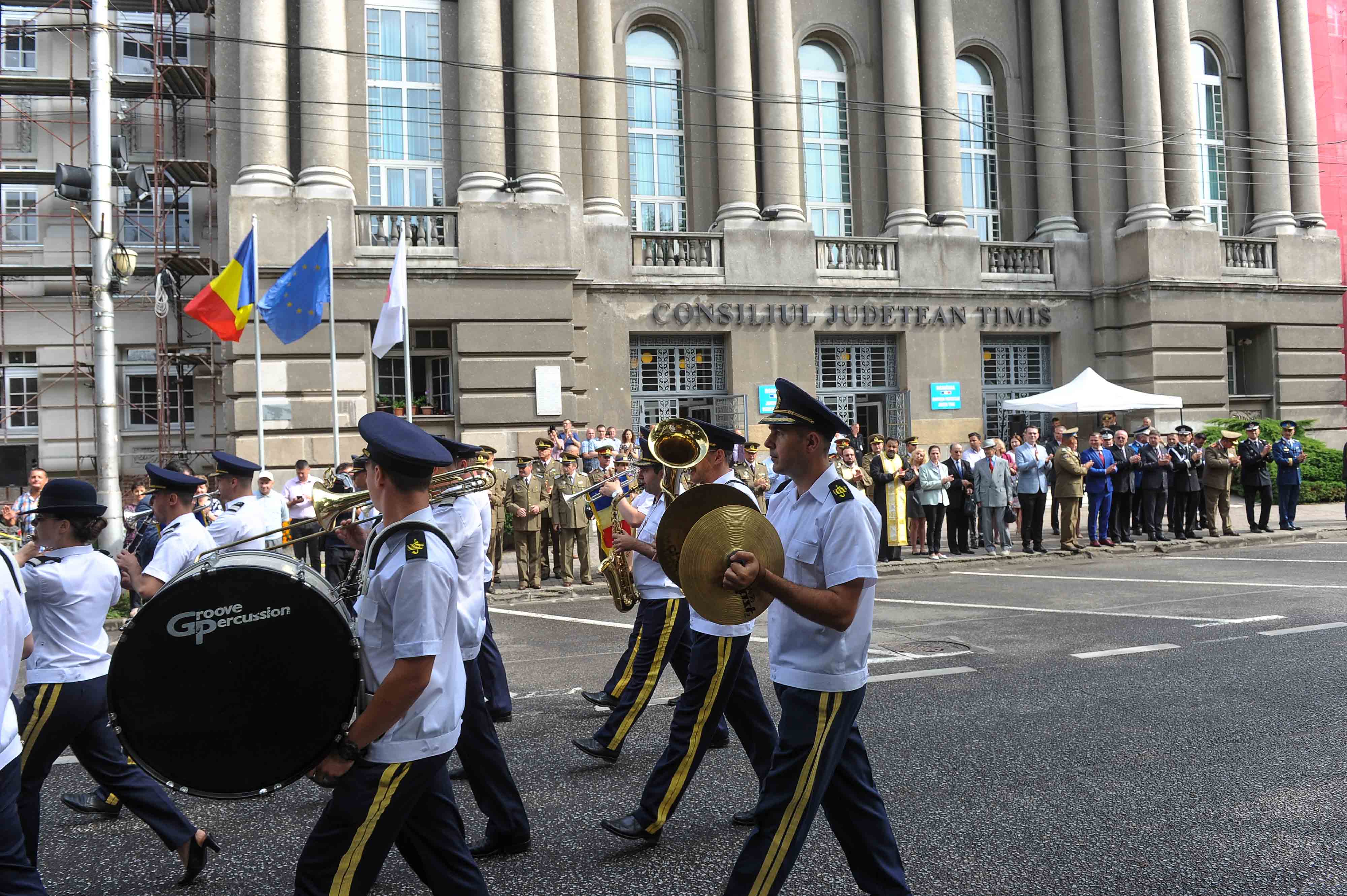 Militari, poliţişti, pompieri şi jandarmi au defilat, astăzi, la Timişoara, de Ziua Imnului Naţional.