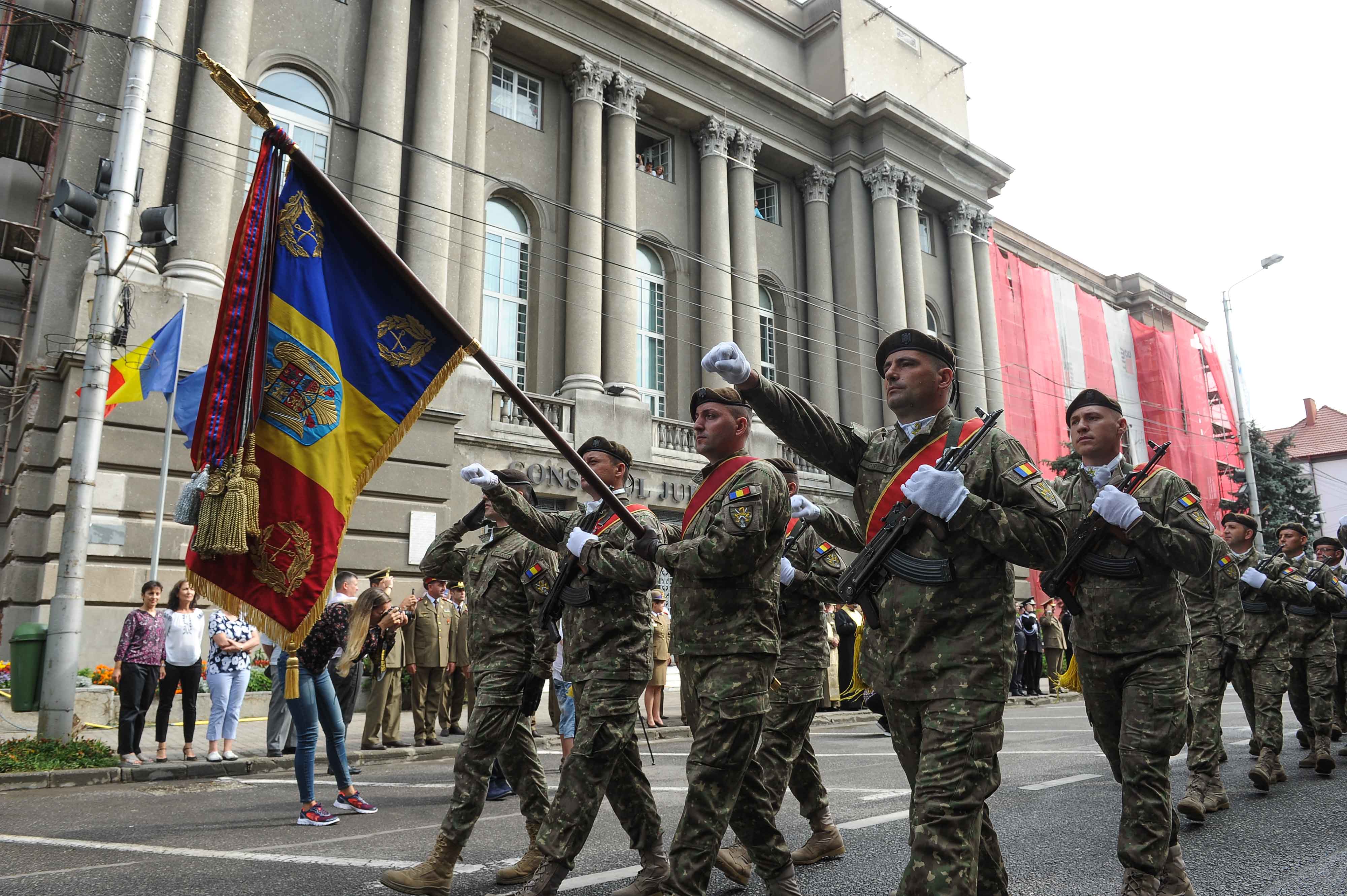 În faţa Palatului Administrativ a fost organizată o defilare militară, la care au fost prezenţi şi au prezentat onorul reprezentanţi ai Armatei, Pompierilor şi Jandarmeriei.