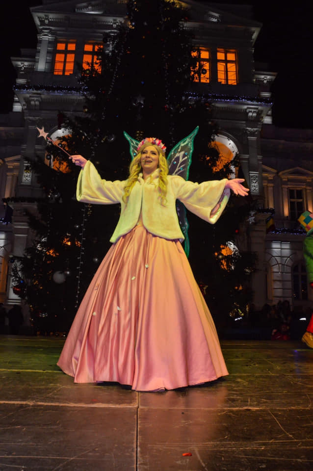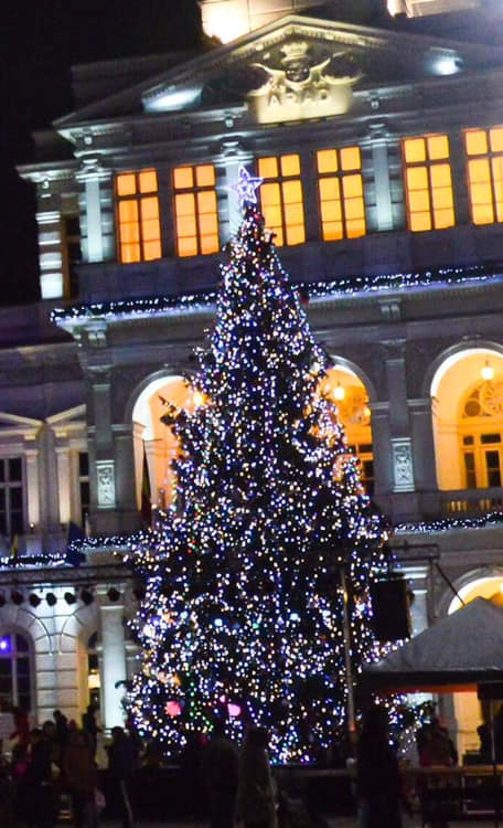 Bradul, care are circa 20 de metri, a fost adus din Munții Apuseni, a fost împodobit cu circa 1000 de metri de şir luminos şi zeci de fulgi dinamici.