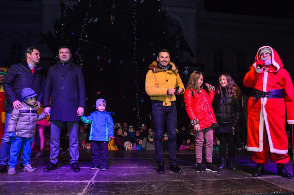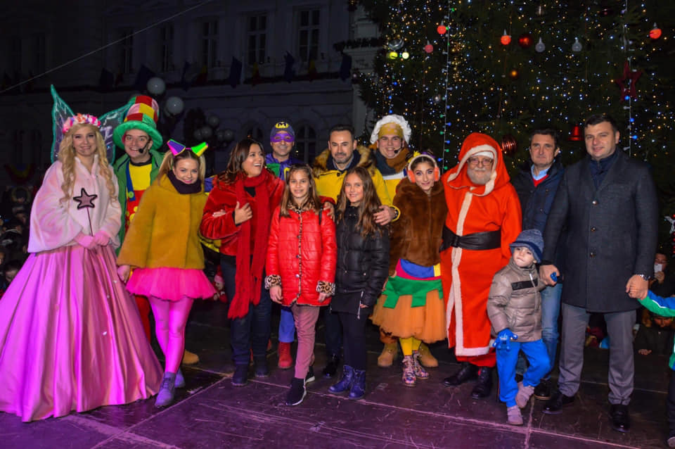 FOTO/ Moș Nicolae a împărțit mii de daruri copiilor din Arad. Au fost aprinse luminițe din pomul de sărbători