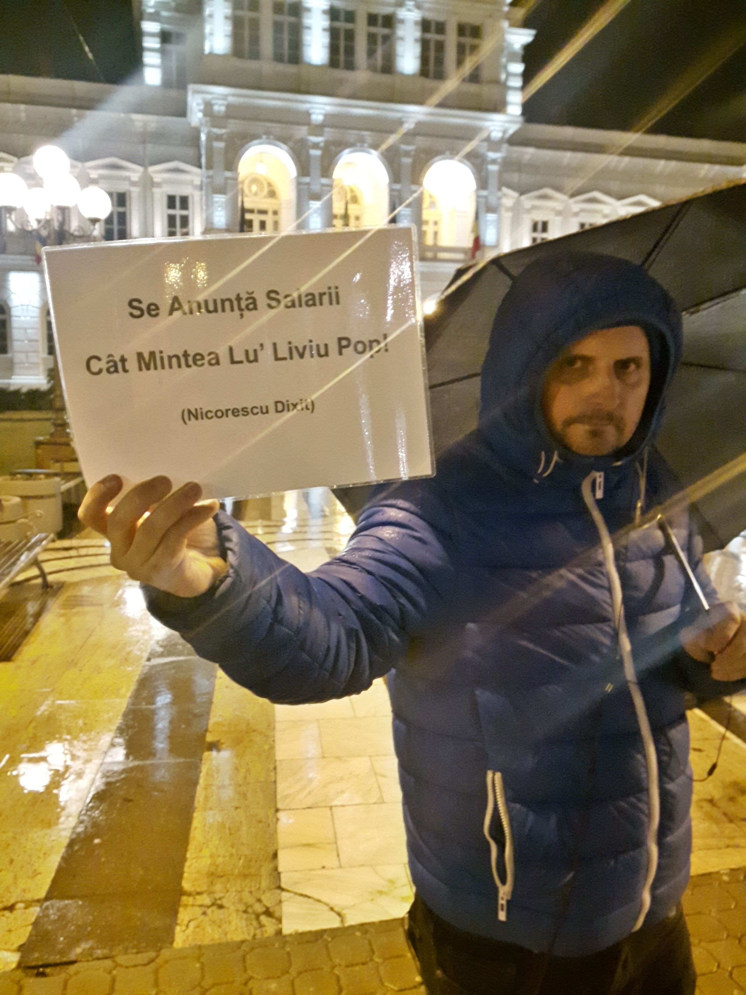 ‘DNA să vină să vă ia!’, ‘Slugile nu iau decizii, doar le motivează’, ‘Tudorel eşti sluga model’, ‘PSD ciuma roşie’, ‘Uniţi salvăm toată România’, ‘Susţin Laura Codruţa Kovesi’ au fost câteva dintre lozincile inscripţionate pe bannere, manifestanţii protestând paşnic, mulţi dintre ei fluturând drapelul tricolor.