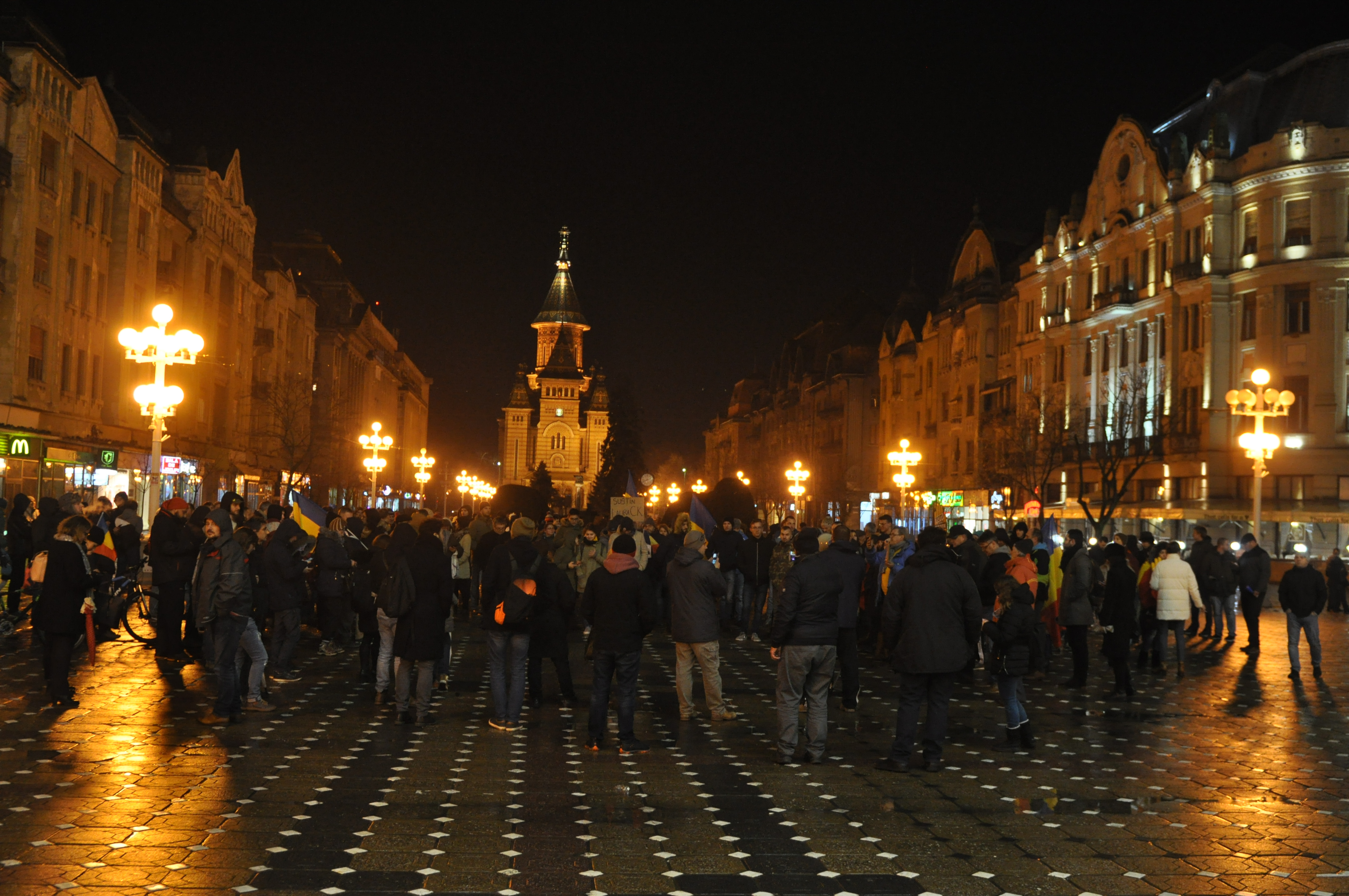 Timișorenii au ieșit în Piaţa Victoriei în această seară, după ce ministrul Justiţiei, Tudorel Toader, a anunţat că va declanşa procedura de revocare din funcţie a procurorului-şef al Direcţiei Naţionale Anticorupţie, Laura Codruţa Kovesi.
