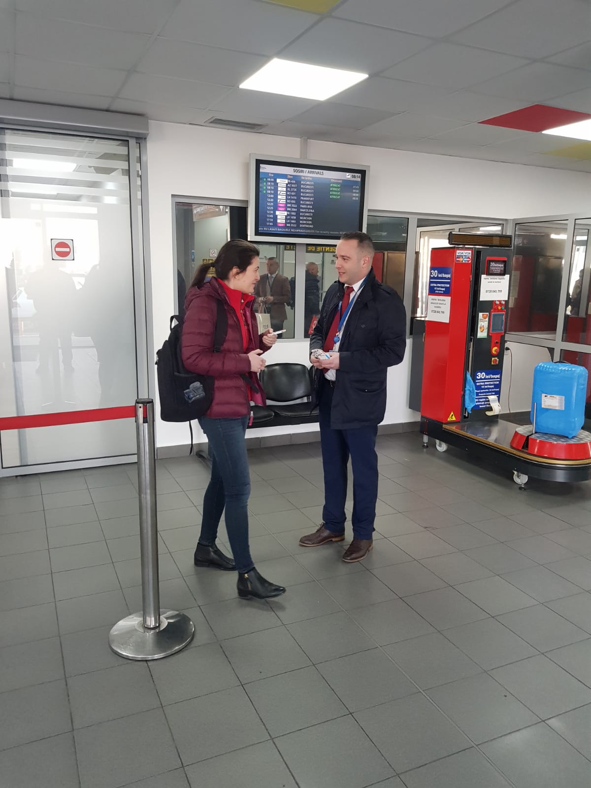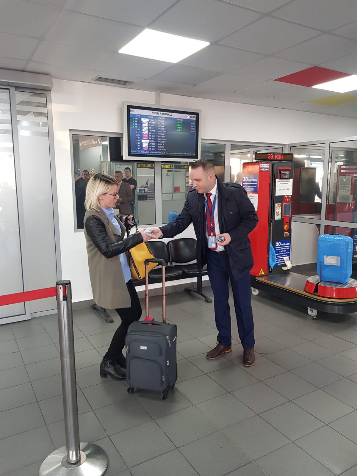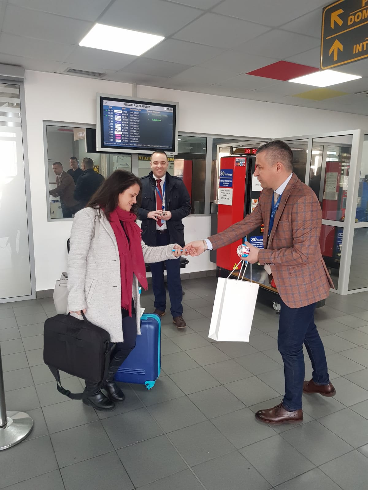 FOTO/ Pasagerele întâmpinate cu mărțișoarte la Aeroportul Internațional din Timișoara