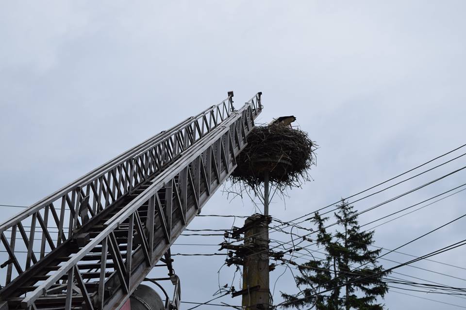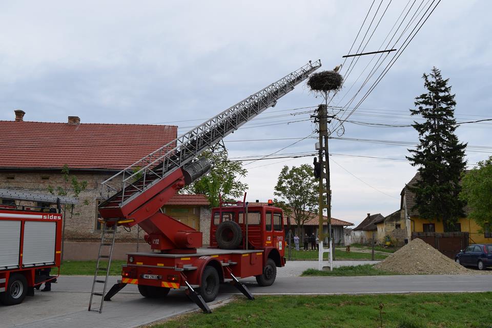 Pompierii militari au luat puiul de barză pe care l-au transportat la veterinar după care l-au dus la unitate unde l-au hrănit și i-au dat apă. În cele din urmă, puiul de barză a fost urcat înapoi în cuib.