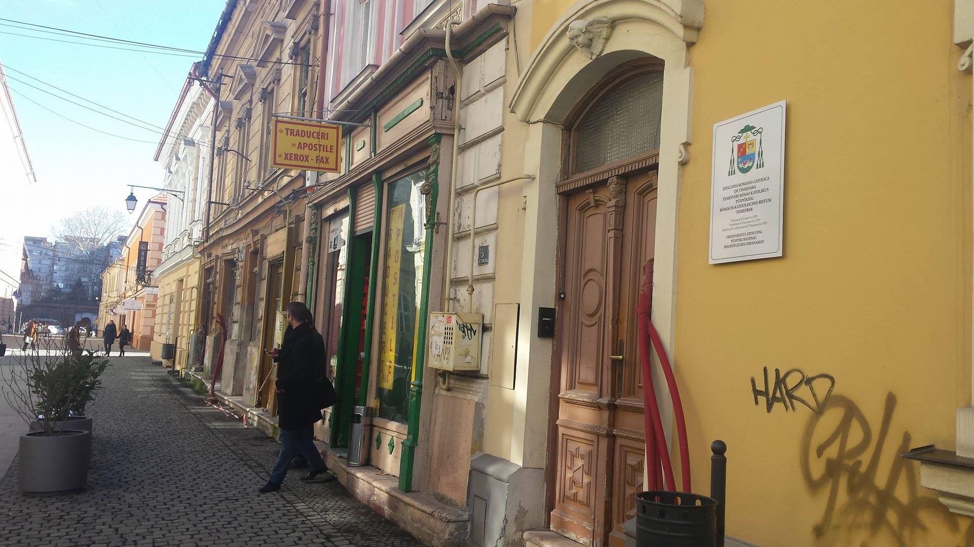 Lipită de clădirea Episcopiei Romano-Catolice, pe strada Eugeniu de Savoya, în Timişoara, o casă pitorească, neobişnuit de îngustă, vopsită în roz, cu două geamuri la etaj şi o prăvălie la parter atrage atenţia. Nu doar imobilul poartă o istorie interesantă, dar și proprietara lui are, la rândul ei, o poveste deosebită.