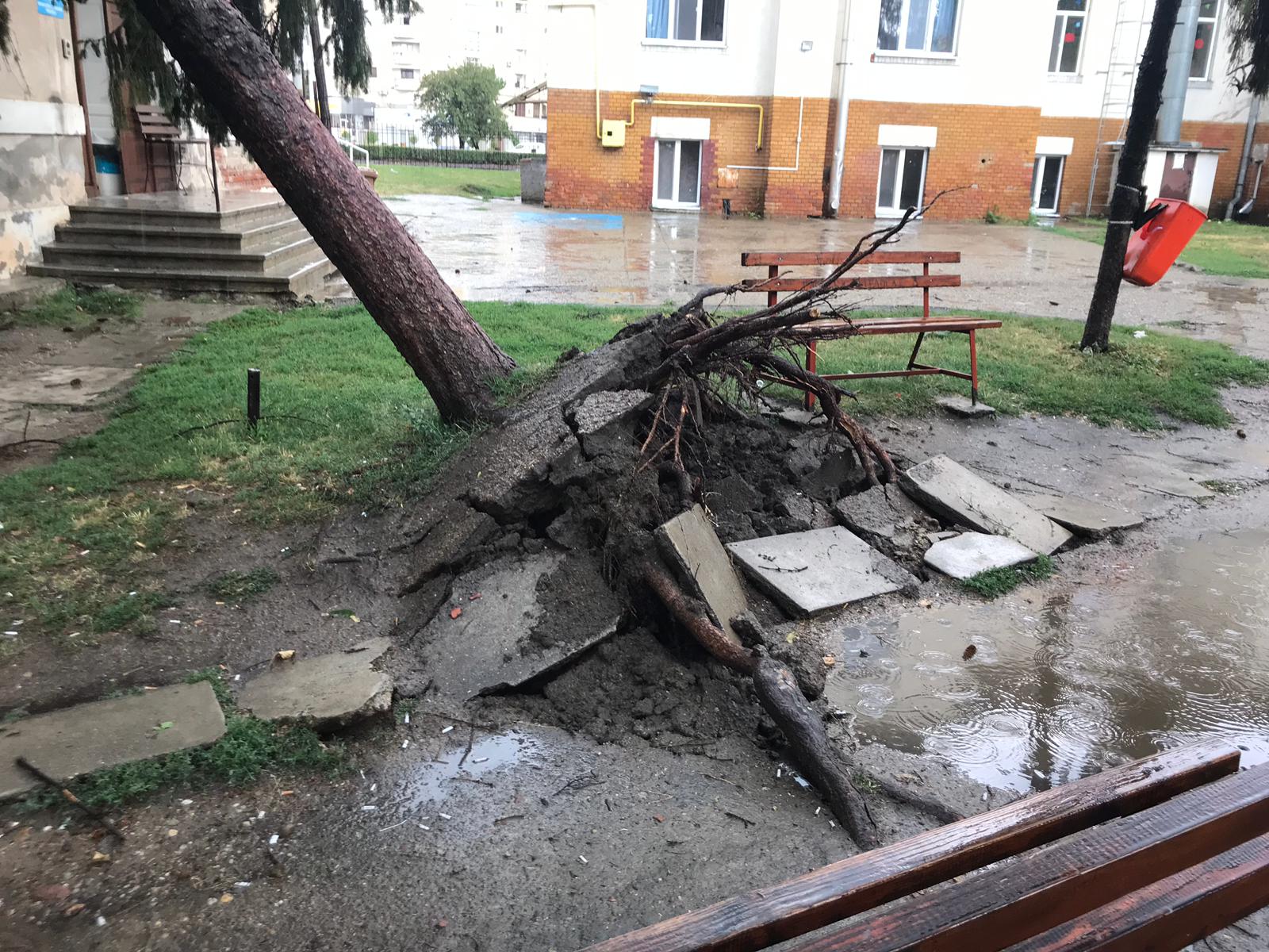 FOTO/ Probleme în Arad din cauza furtunii. Brad prăbușit peste secția de Pediatrie 2 a Spitalului Județean