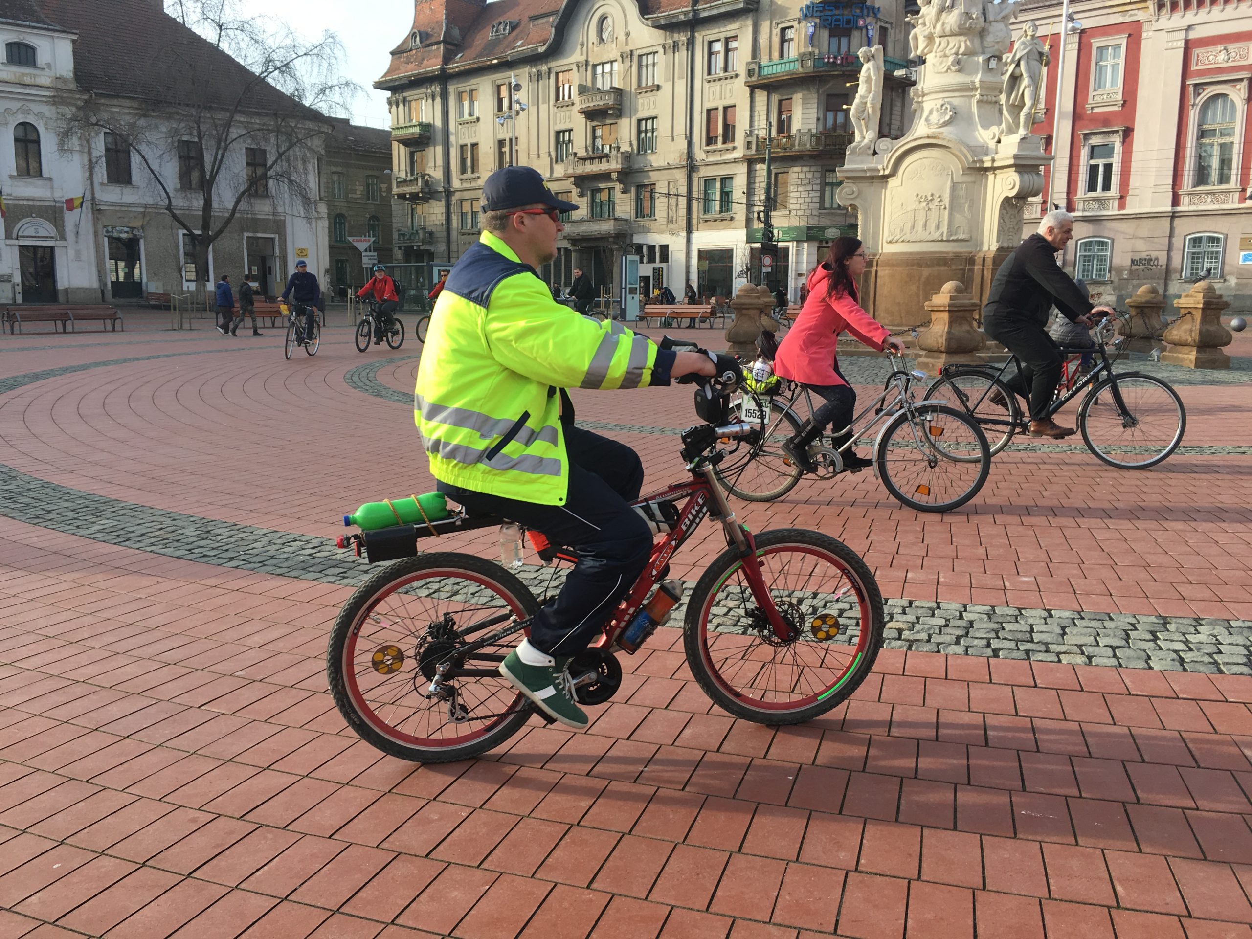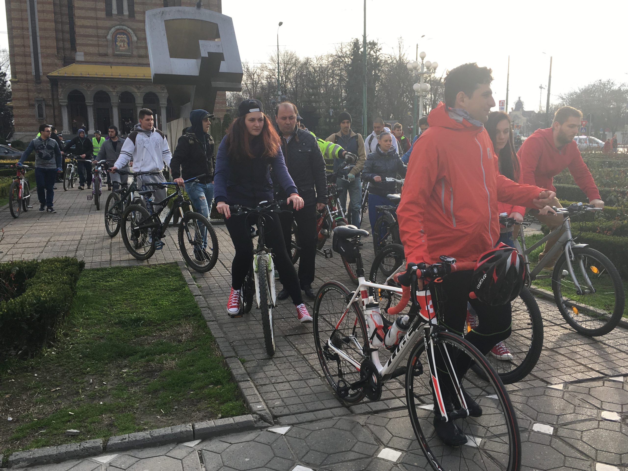 Acţiunea, la care au participat câteva zeci de bicicliști, se dorește un semnal de alarmă faţă de decizia primăriei de a nu permite accesul pe bicicletă în centrul Timişoarei, spune iniţiatorul protestului, Nicolae Bîrsan.