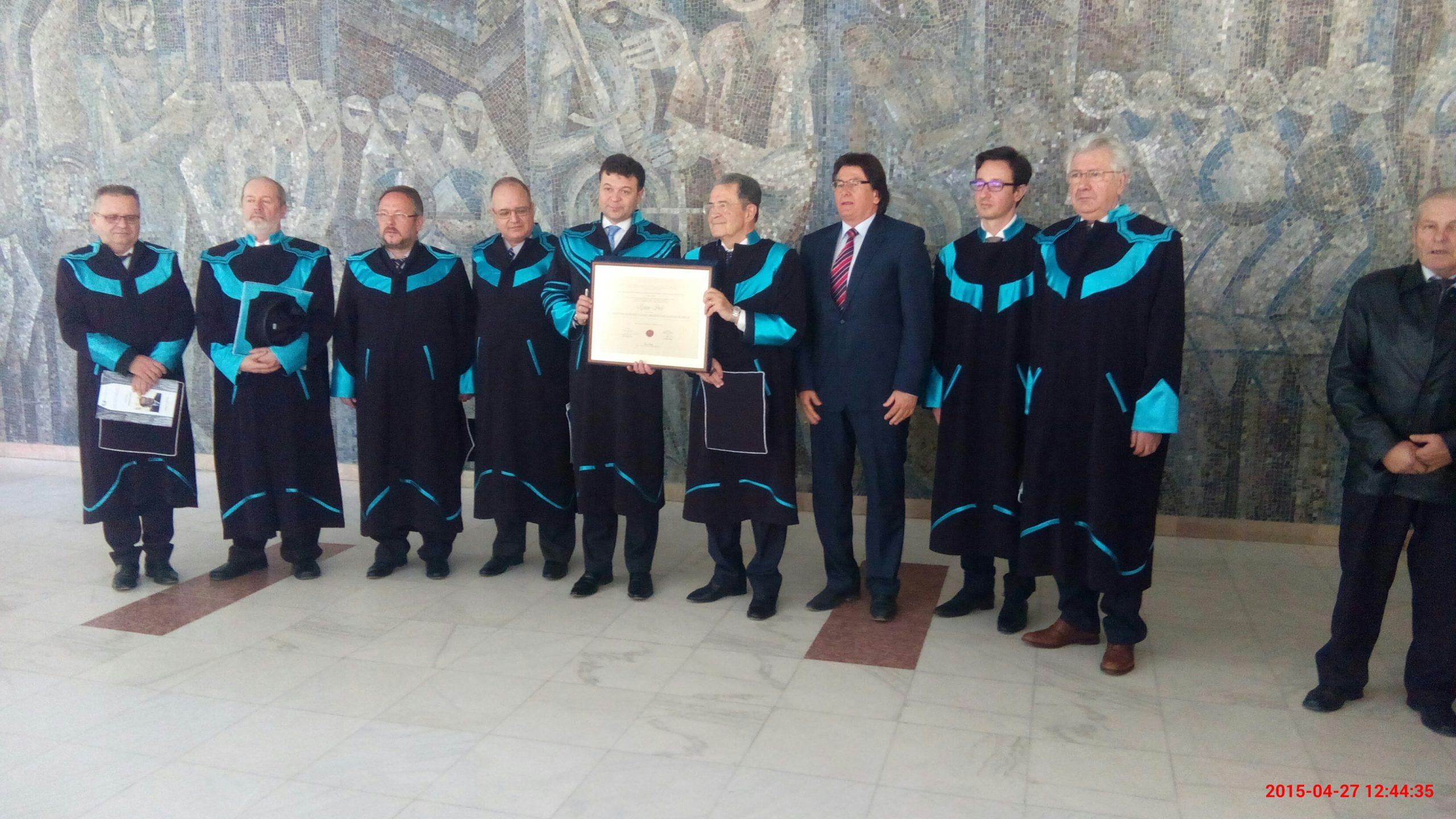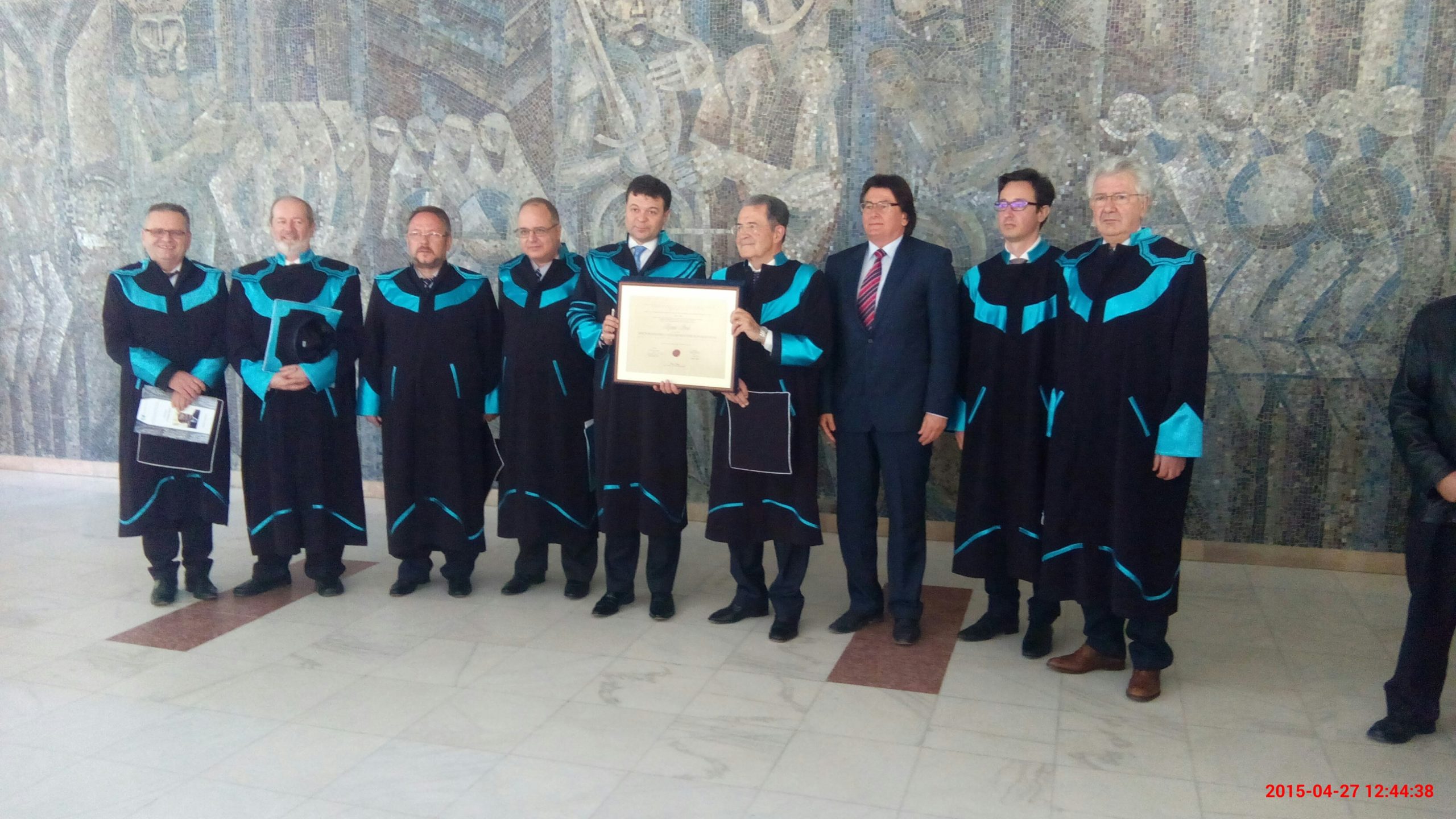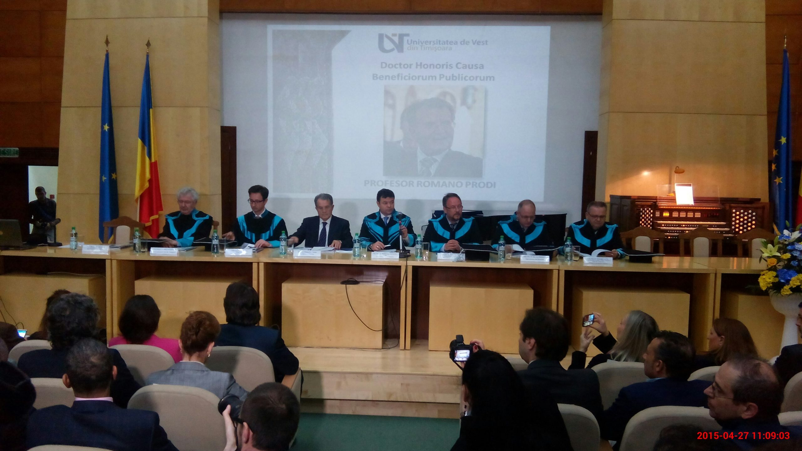 Senatul UVT a decis să acorde titlul de Doctor Honoris Causa în semn de recunoaştere a contribuţiei aduse de profesorul Romano Prodi în diverse momente importate din istoria Europei ultimelor decenii, fiind un ‘europenist’ incurabil.
