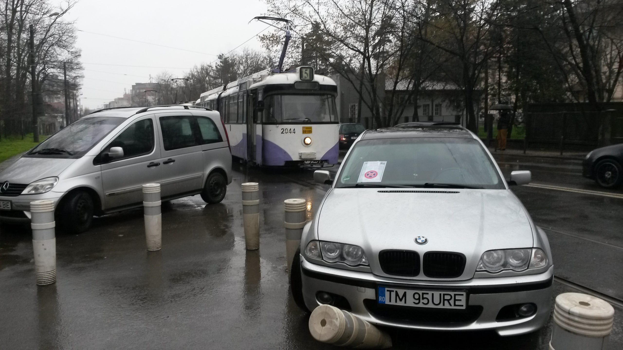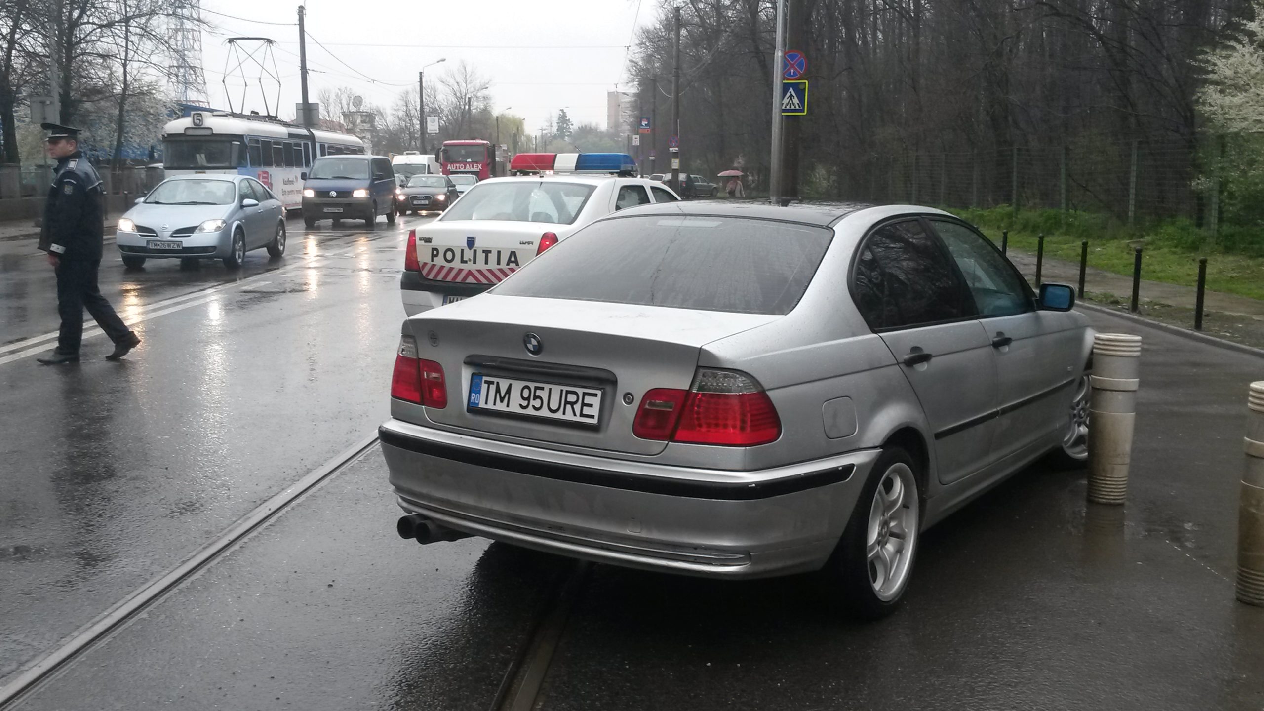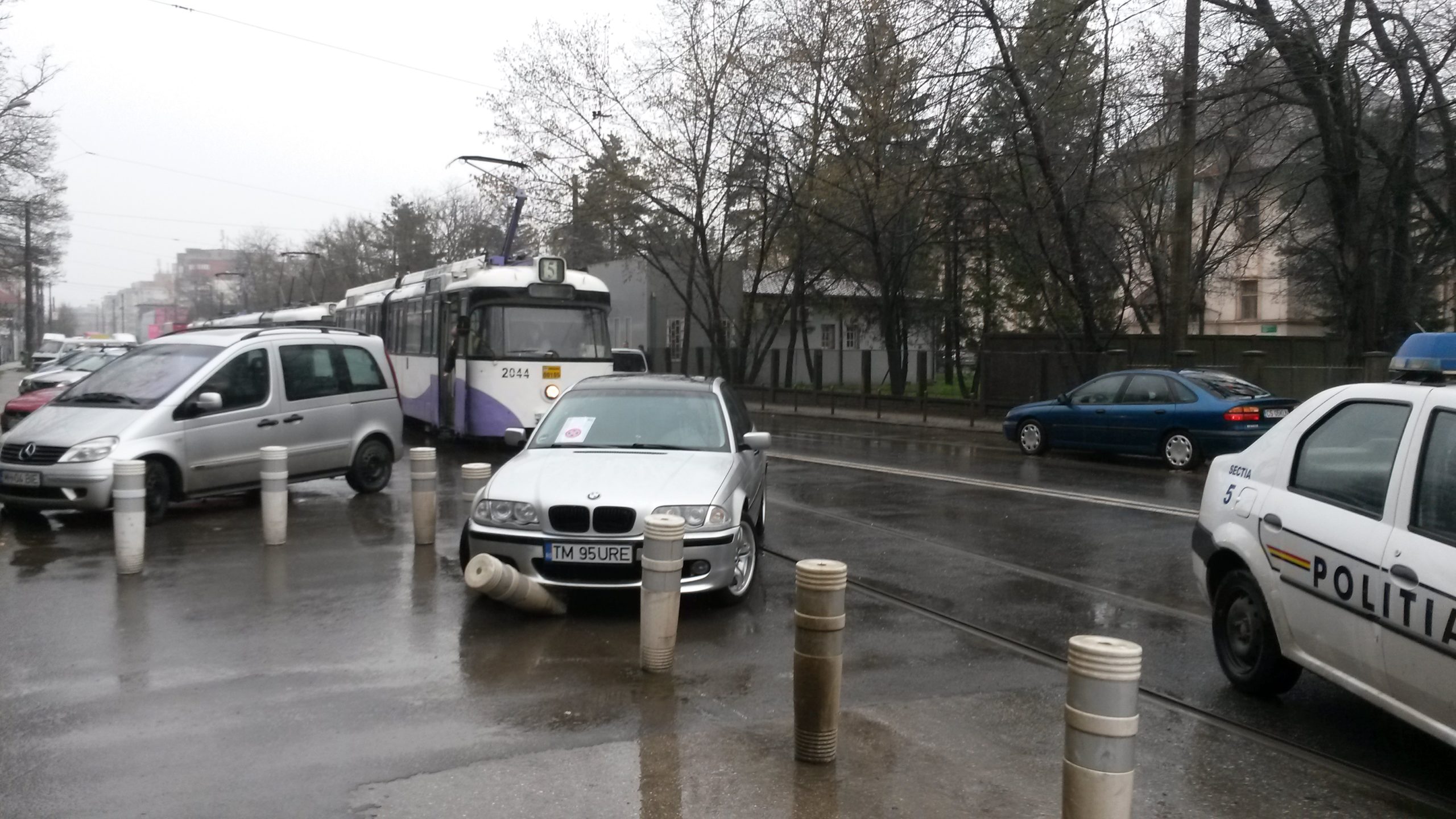FOTO / Și-a parcat mașina pe linia de tramvai și a blocat circulația minute în șir la oră de vârf în Timișoara