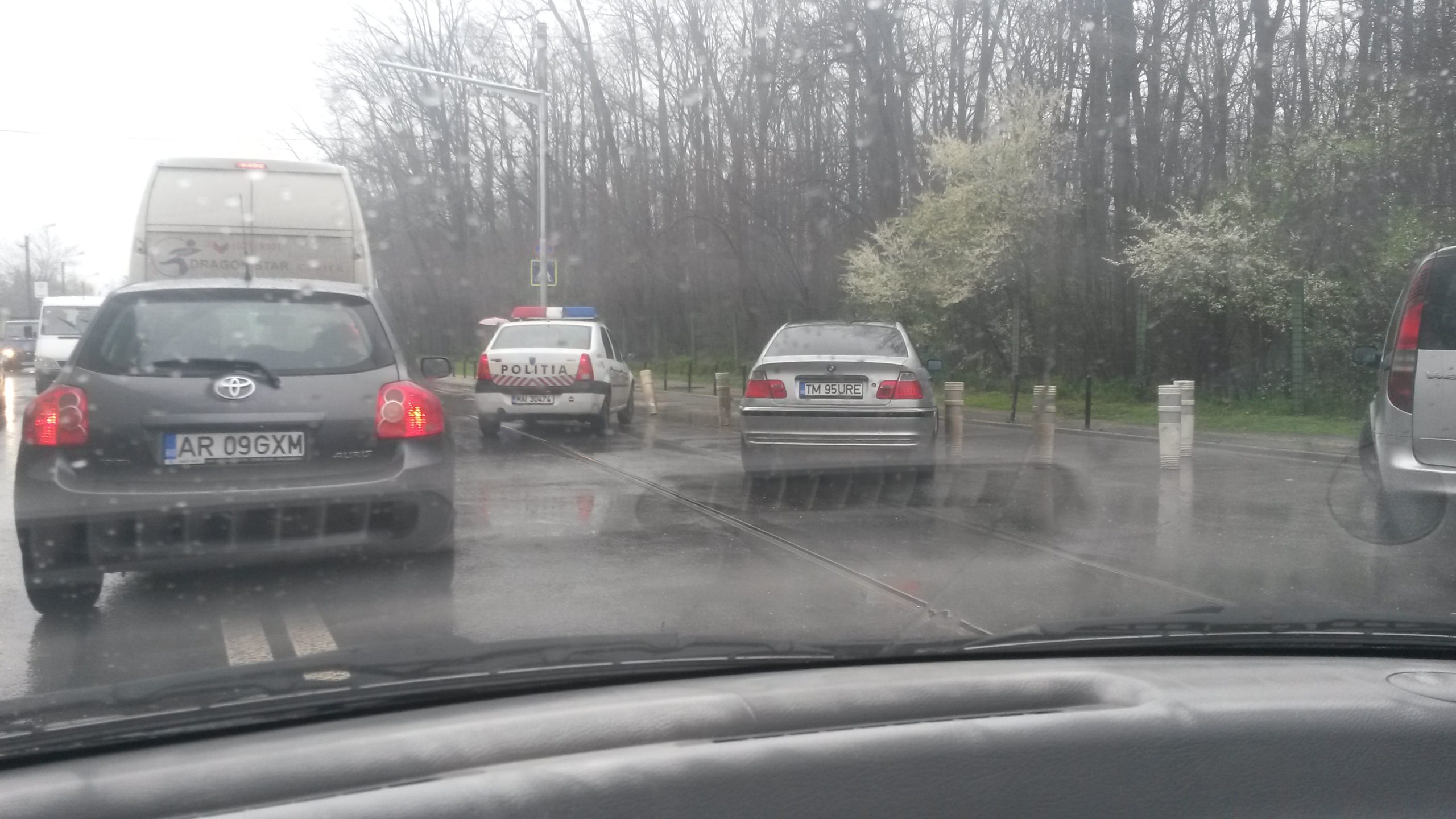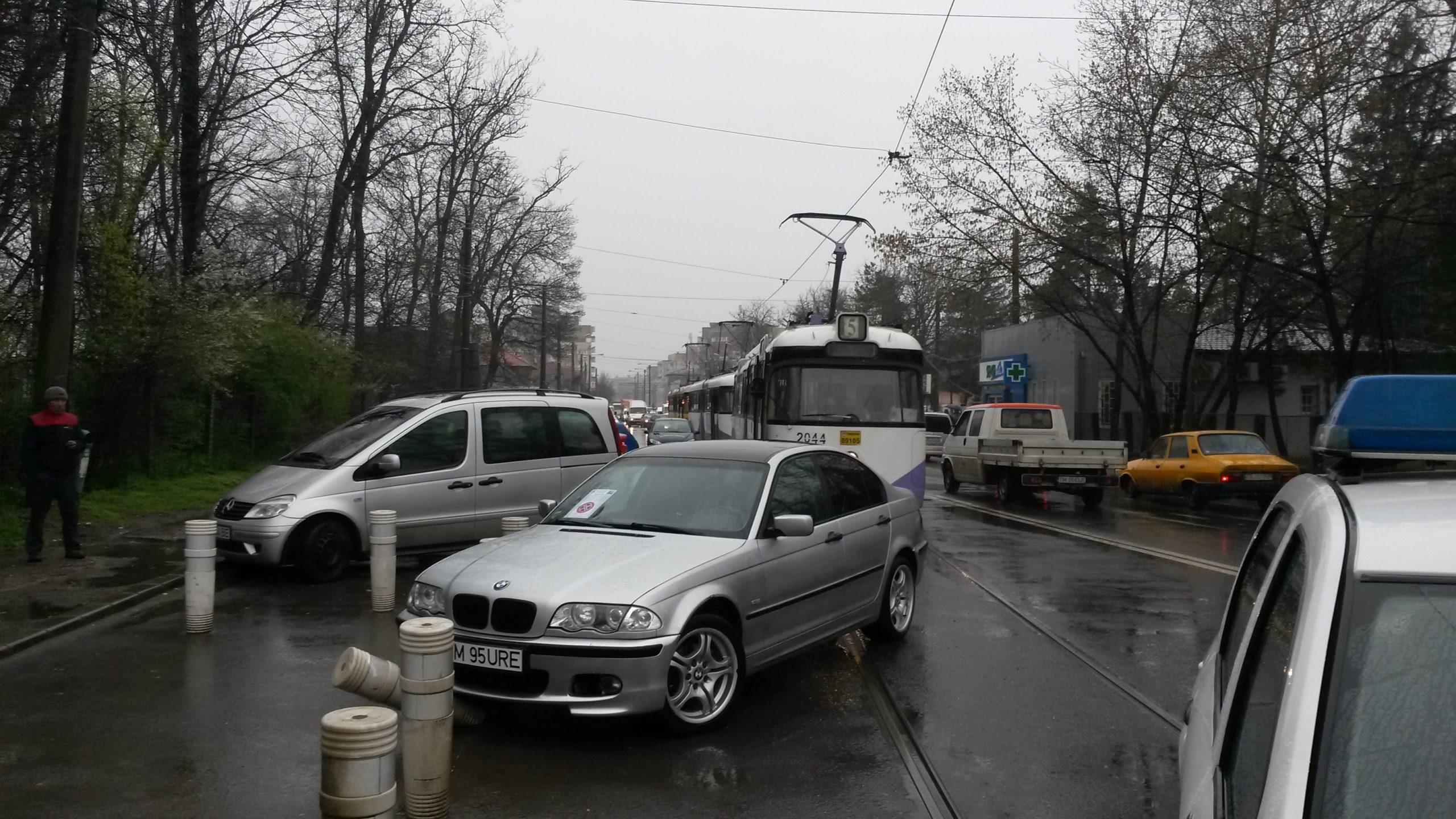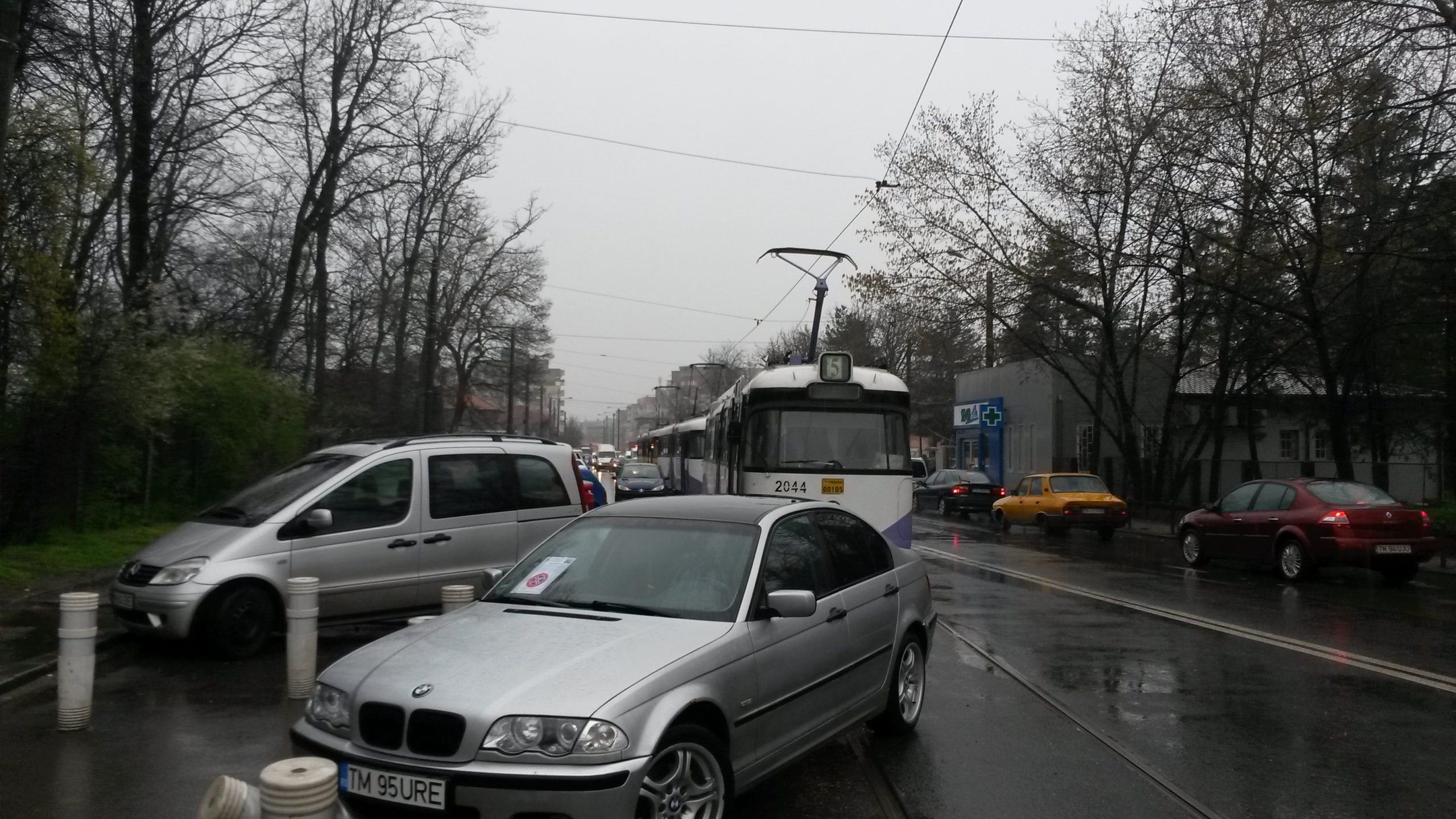 FOTO / Și-a parcat mașina pe linia de tramvai și a blocat circulația minute în șir la oră de vârf în Timișoara