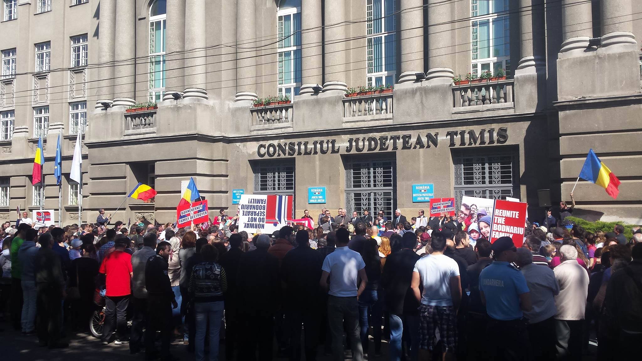 Oamenii, marea lor majoritate membri au cultelor evanghelice din Timişoara, s-au adunat în faţa Prefecturii unde au cerut autorităţilor norvegiene să nu mai destabilizeze familia. Oamenii au salutat faptul că unul dintre copii s-a reîntors în familie dar au cerut o soluţie pentru întregirea pe deplin a familiei Bodnariu.