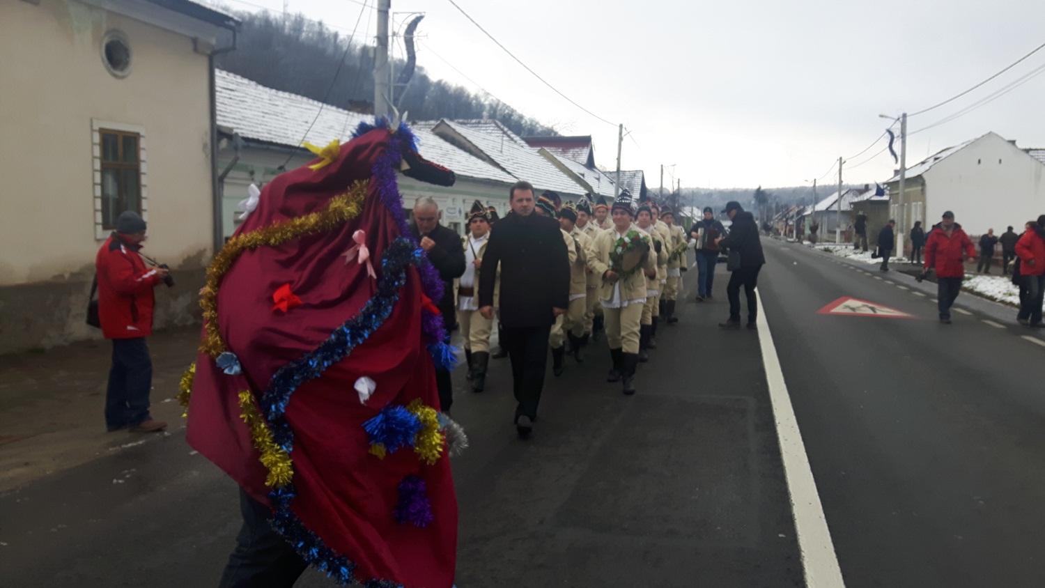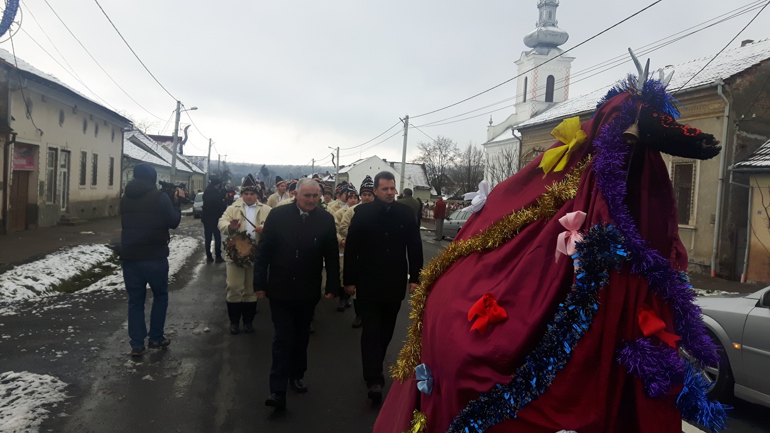 În semn de respect pentru memoria Regelui Mihai I, dubaşii de la Săvârşin, nu au mers în alai pe DN7 însoţiţi de muzică, ci doar au bătut tobele în marş. Ei au fost însoțit și de unii localnici, dar și de oameni veniți din alte județe.