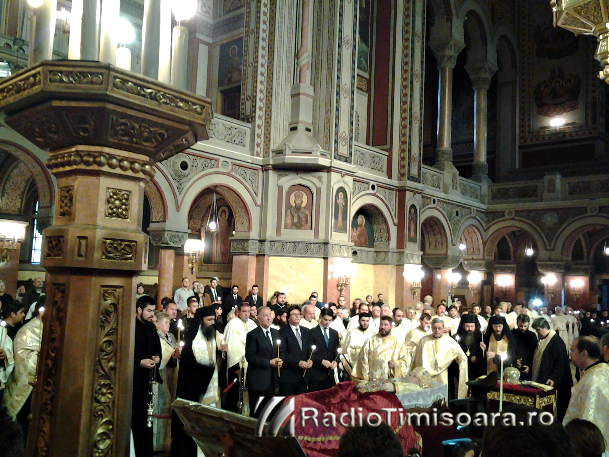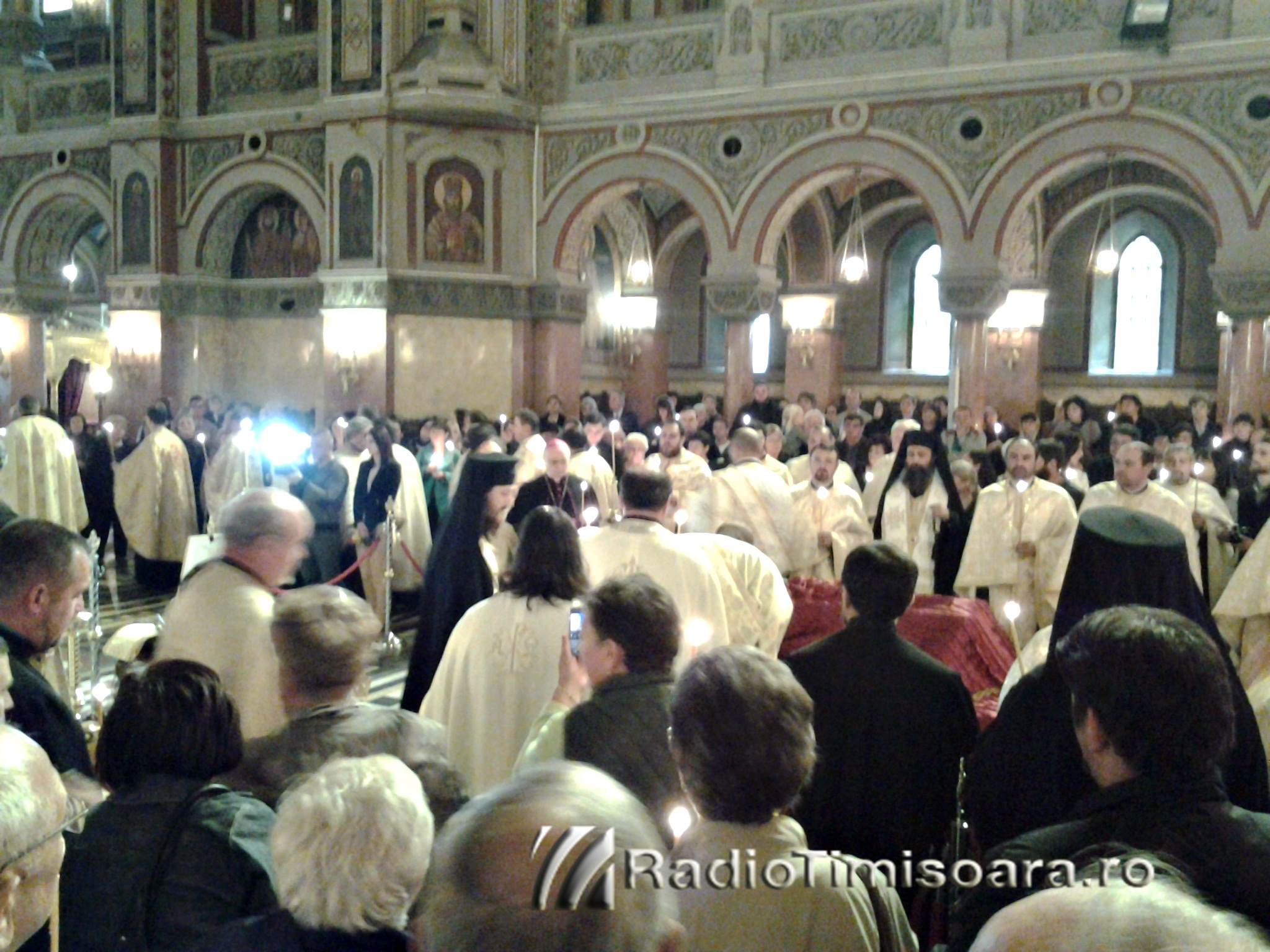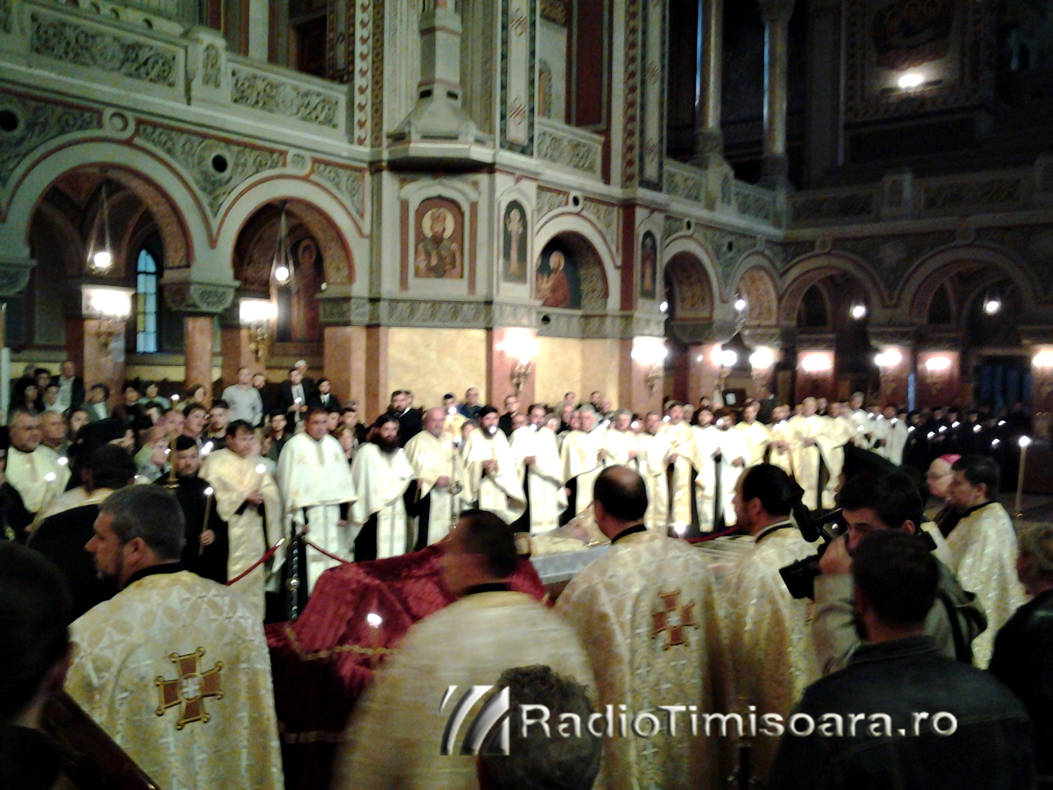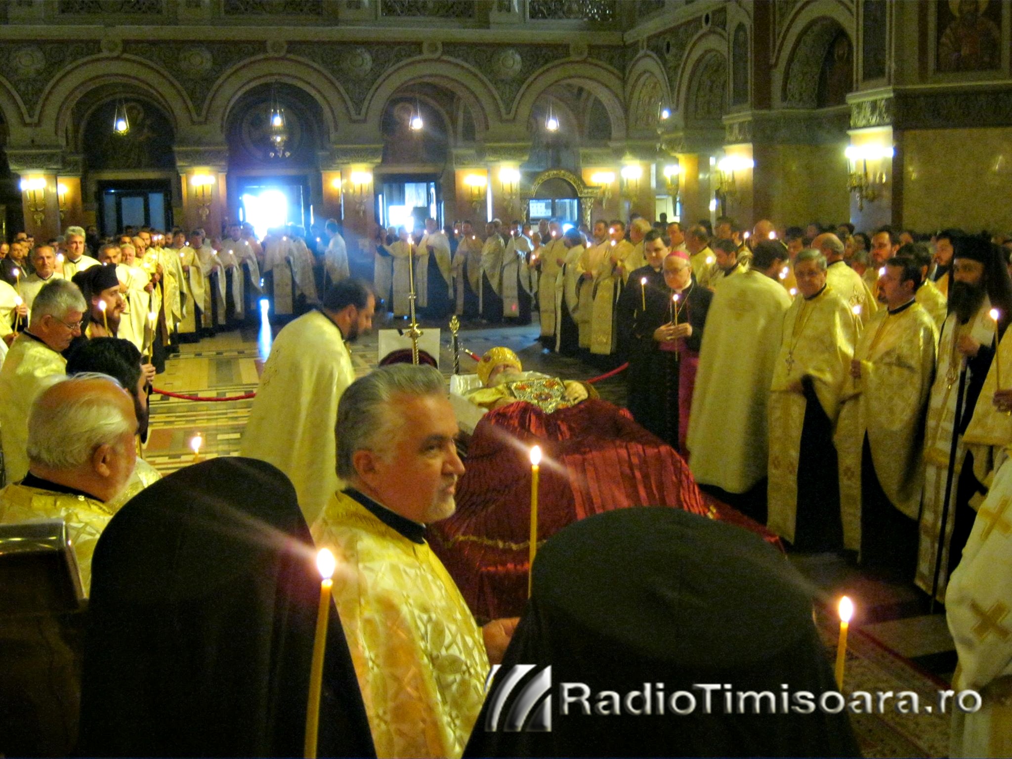 Catedrala Mitropolitană din Timişoara este aproape plină de clerici şi mireni veniţi la procesiunile organizate Mitropolitului Banatului. Aproape 150 de preoţi, diaconi, şi personal clerical, alături de 500 de credincioşi veghează lângă catafalcul Inalt Preasfințitului Nicolae. Trupul Mitropolitul a fost aşezat pe un postament special în faţa altarului sfânt din Catedrală. Aici vor fi oficiate mai multe slujbe de pomenire, iar la căptătâiul Înalt Preasfințitului sau vor sta în permanență doi preoți și doi călugari care vor citi din Sfintele Scripturi.