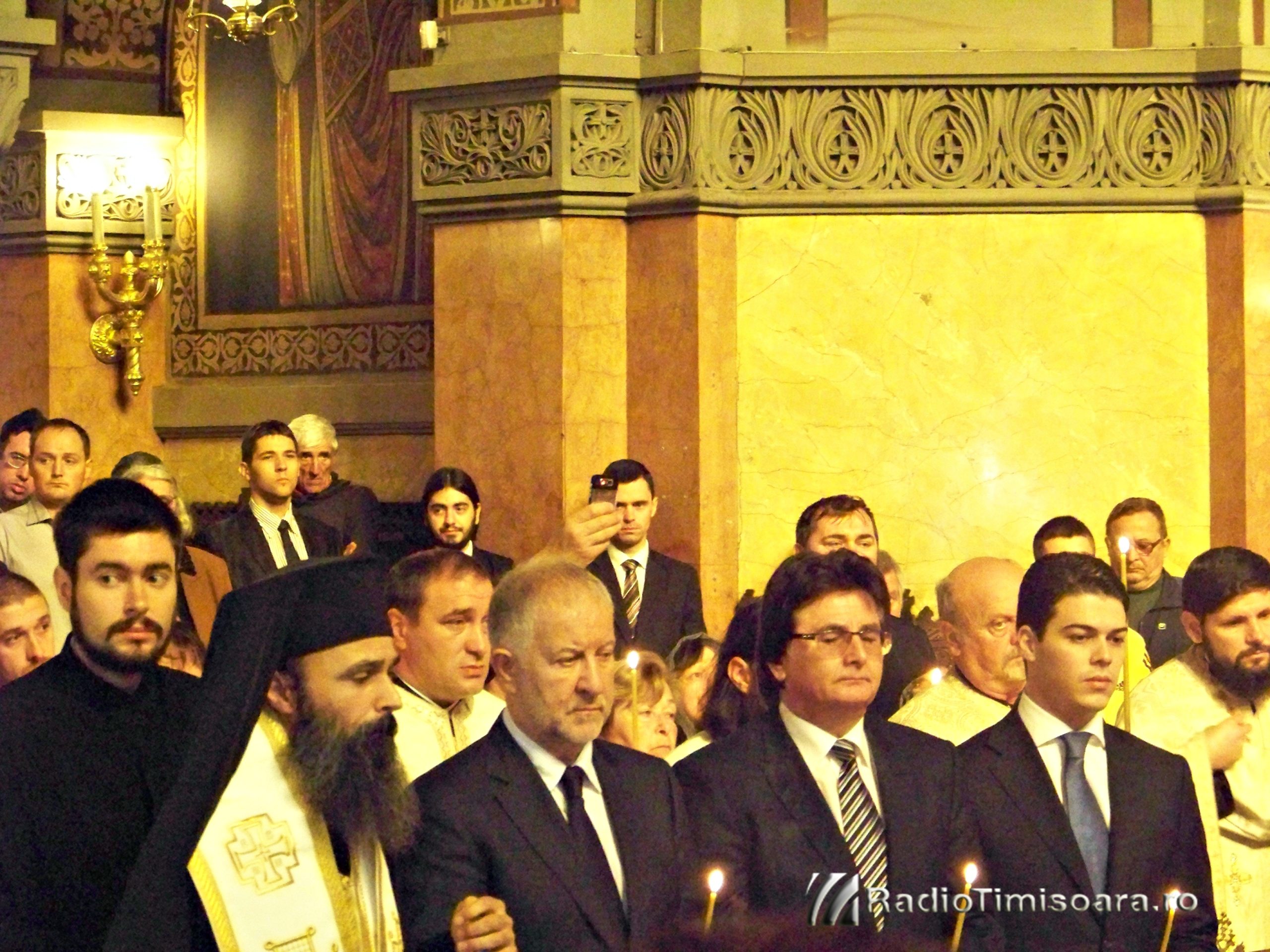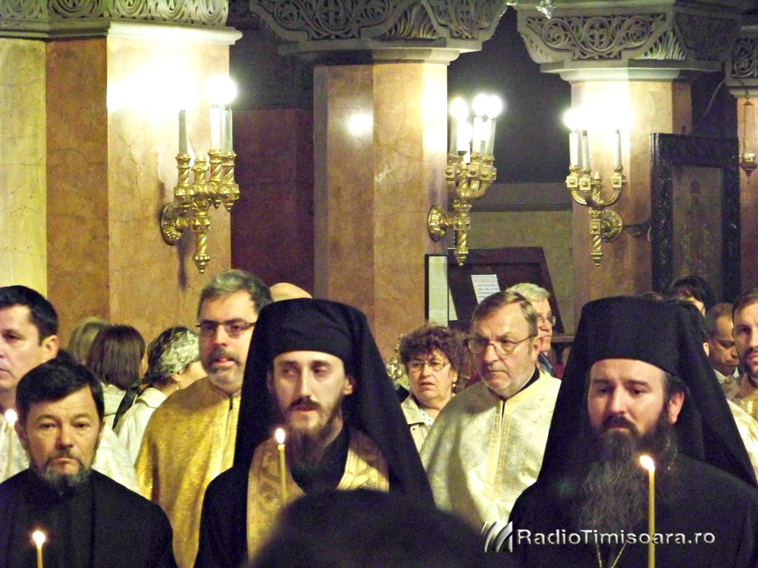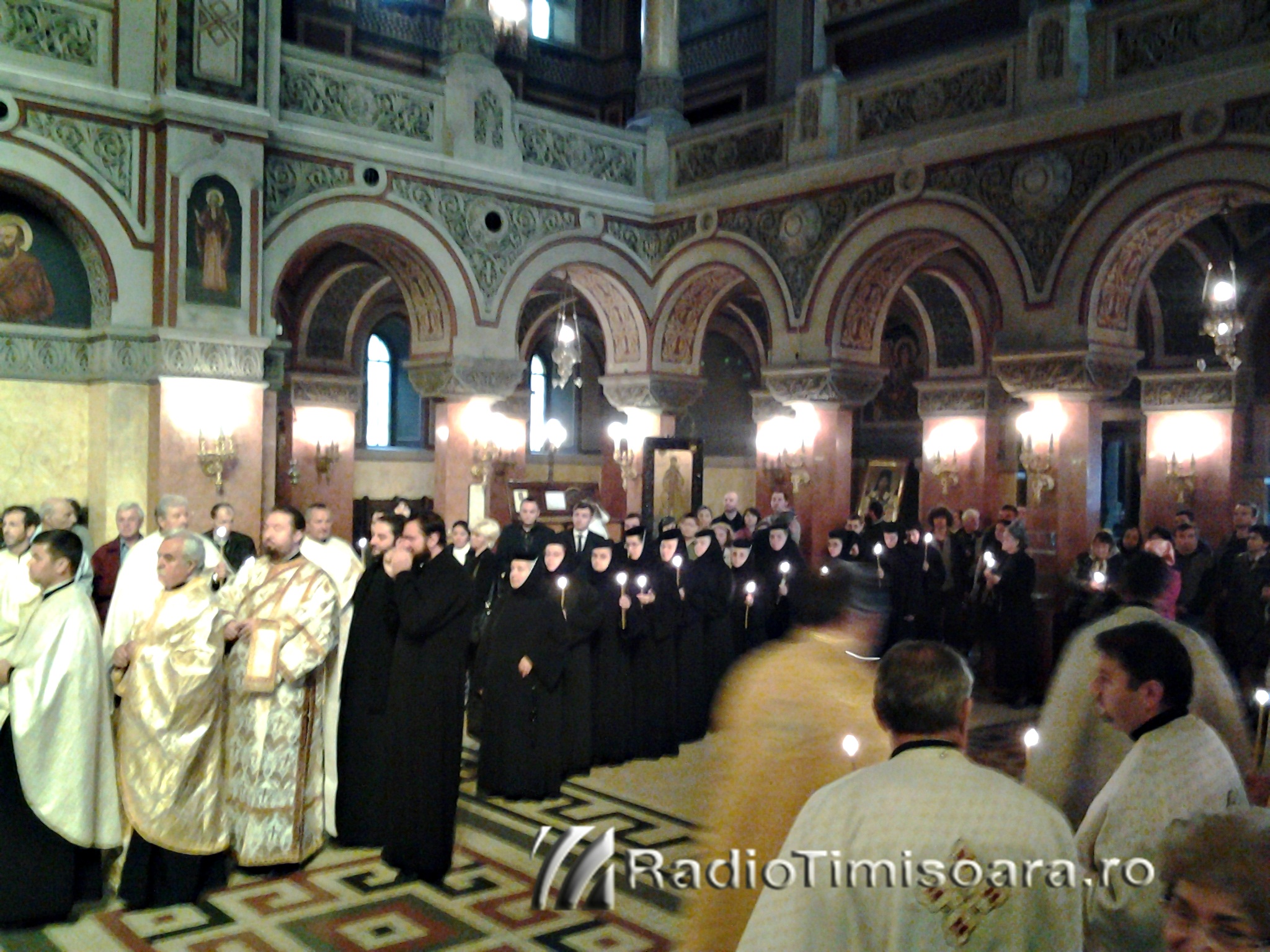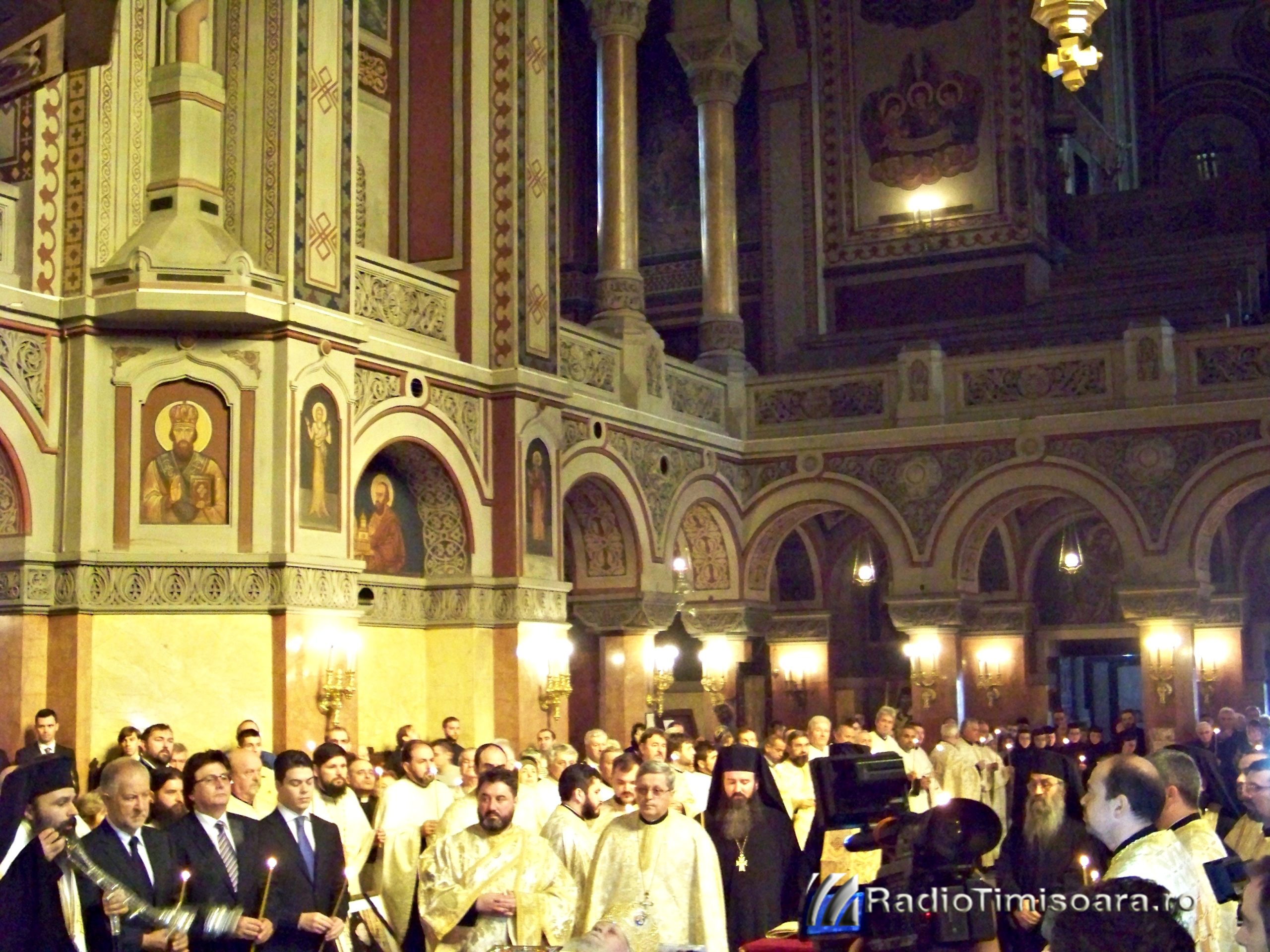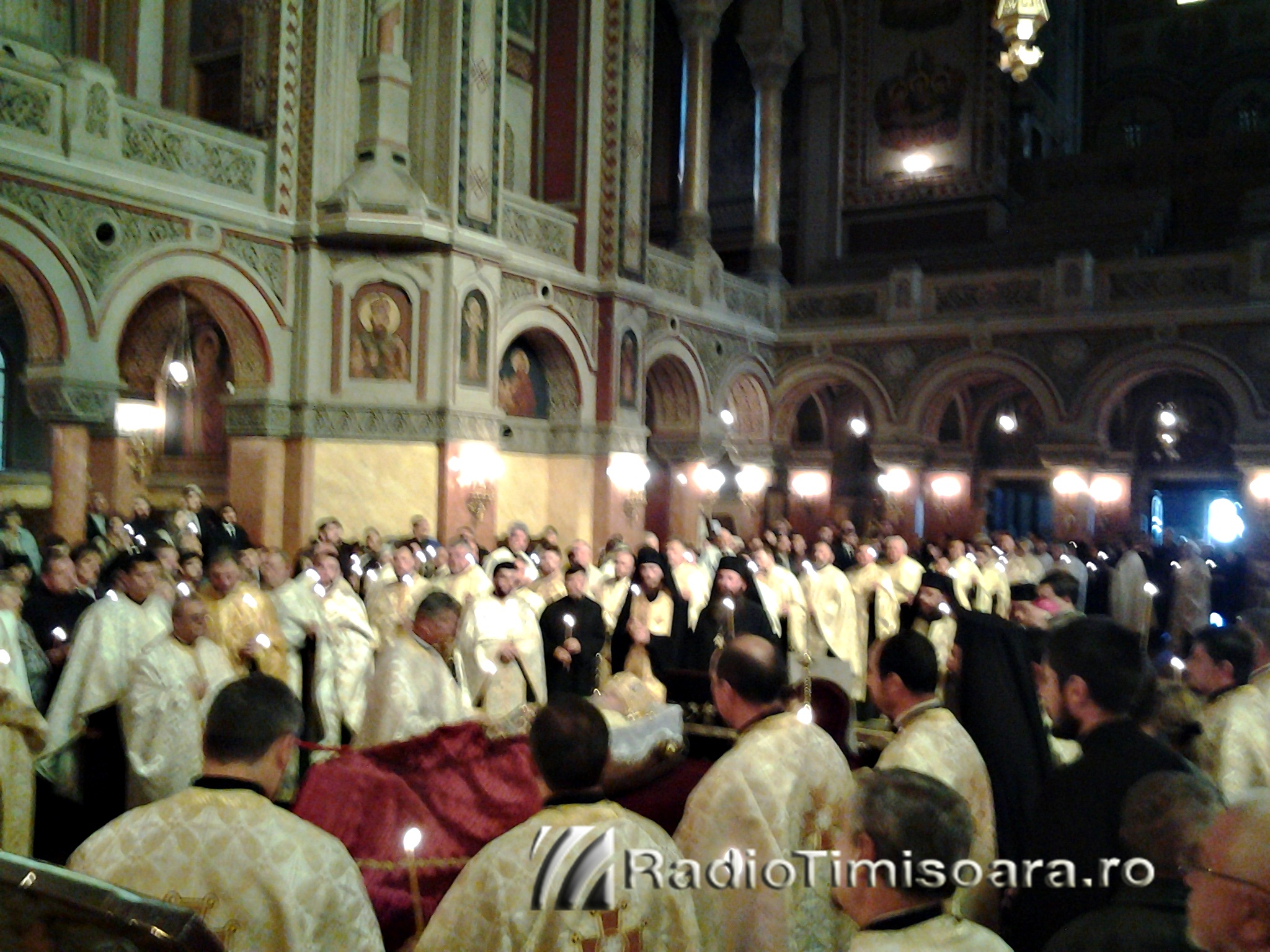 Catedrala Mitropolitană din Timişoara este aproape plină de clerici şi mireni veniţi la procesiunile organizate Mitropolitului Banatului. Aproape 150 de preoţi, diaconi, şi personal clerical, alături de 500 de credincioşi veghează lângă catafalcul Inalt Preasfințitului Nicolae. Trupul Mitropolitul a fost aşezat pe un postament special în faţa altarului sfânt din Catedrală. Aici vor fi oficiate mai multe slujbe de pomenire, iar la căptătâiul Înalt Preasfințitului sau vor sta în permanență doi preoți și doi călugari care vor citi din Sfintele Scripturi.