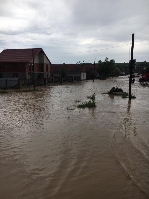 Zeci de gospodării din județul Timiș au fost inundate astăzi în urma ploilor torențiale.