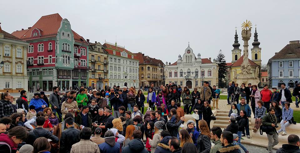 FOTO / Zeci de timișoreni au ieșit să cânte în Piața Unirii