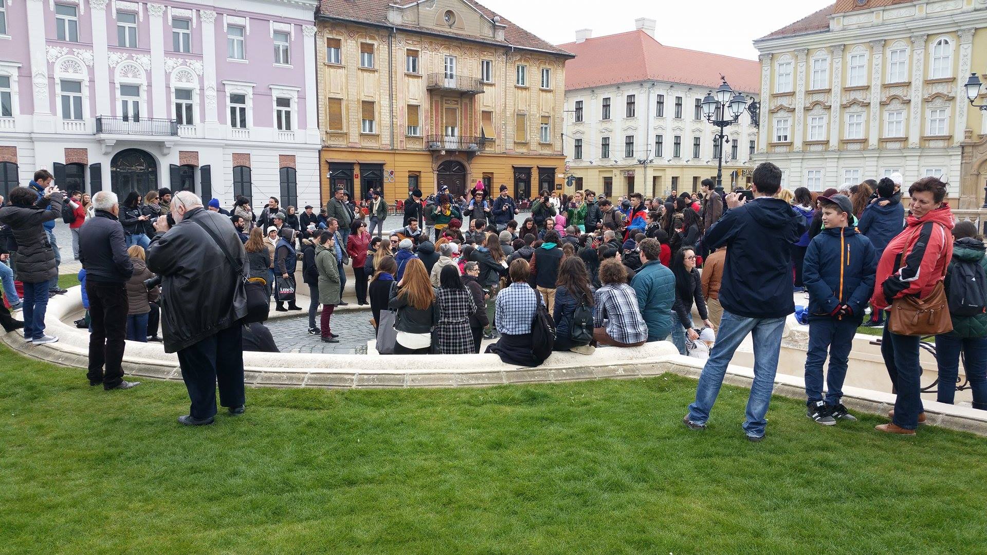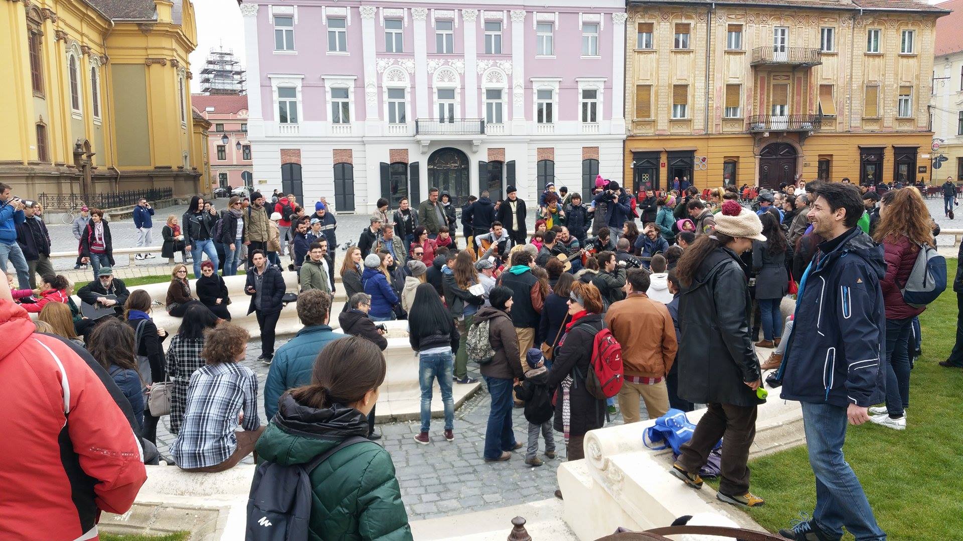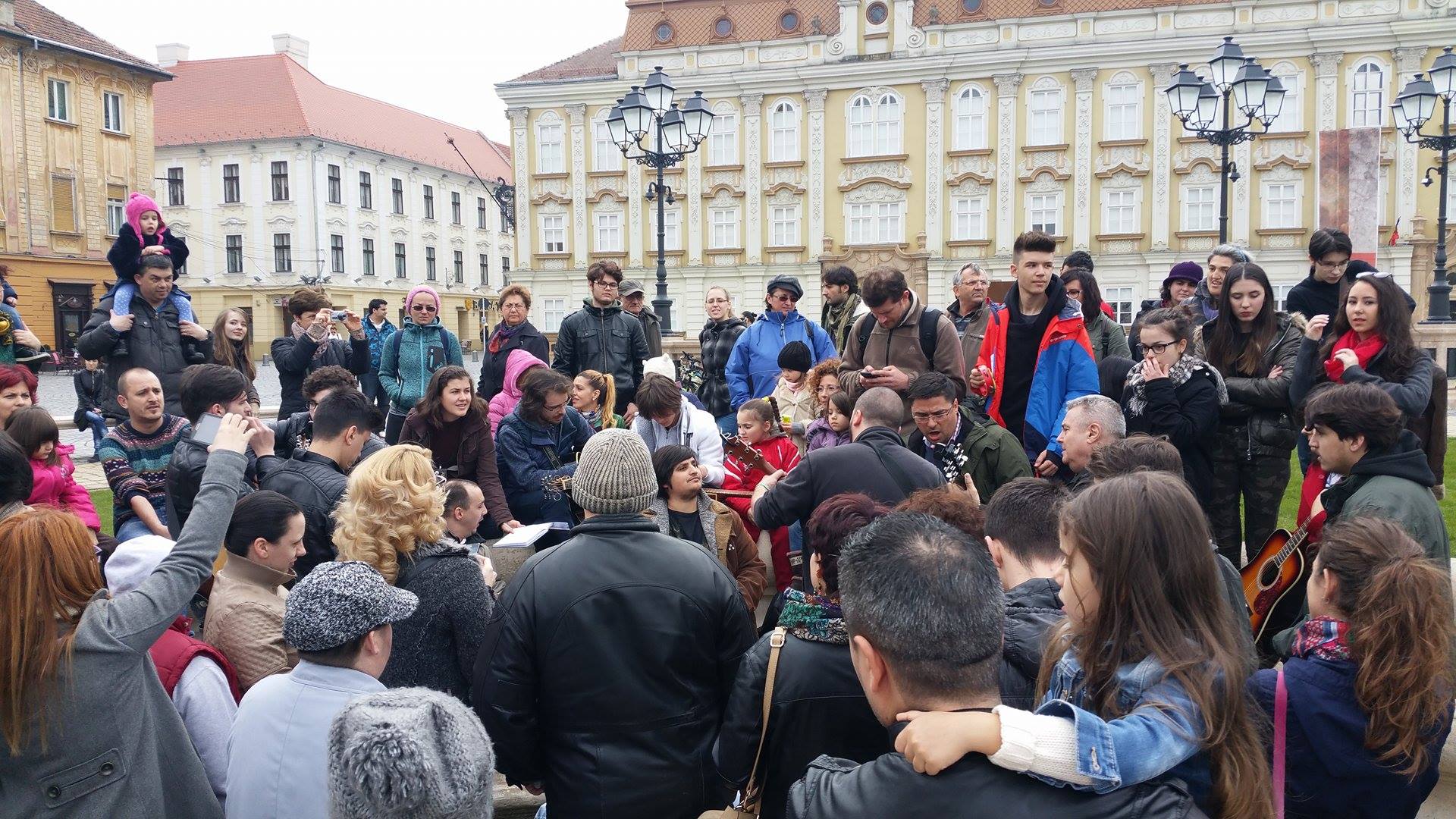 Oameni de toate vârstele, de la copii până la cei trecuți de prima tinerețe au venit să cânte, unii aducând chiar și chitări. Pe lângă timișoreni, au fost numeroși turiști care s-au declarat încântați de evenimentul din Piața Unirii.
