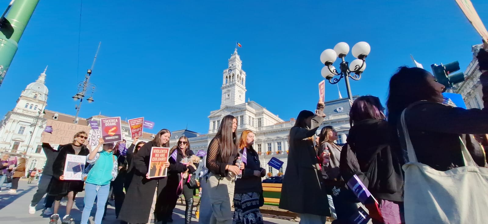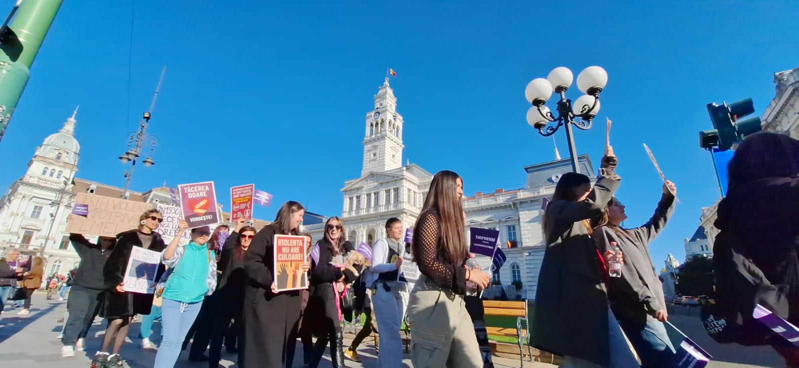 Participanții s-au adunat în fața Teatrului “Ioan Slavici” de unde au pornit în marș către Primăria Arad, într-o acțiune menită să transmită un mesaj ferm împotriva violenței de gen.