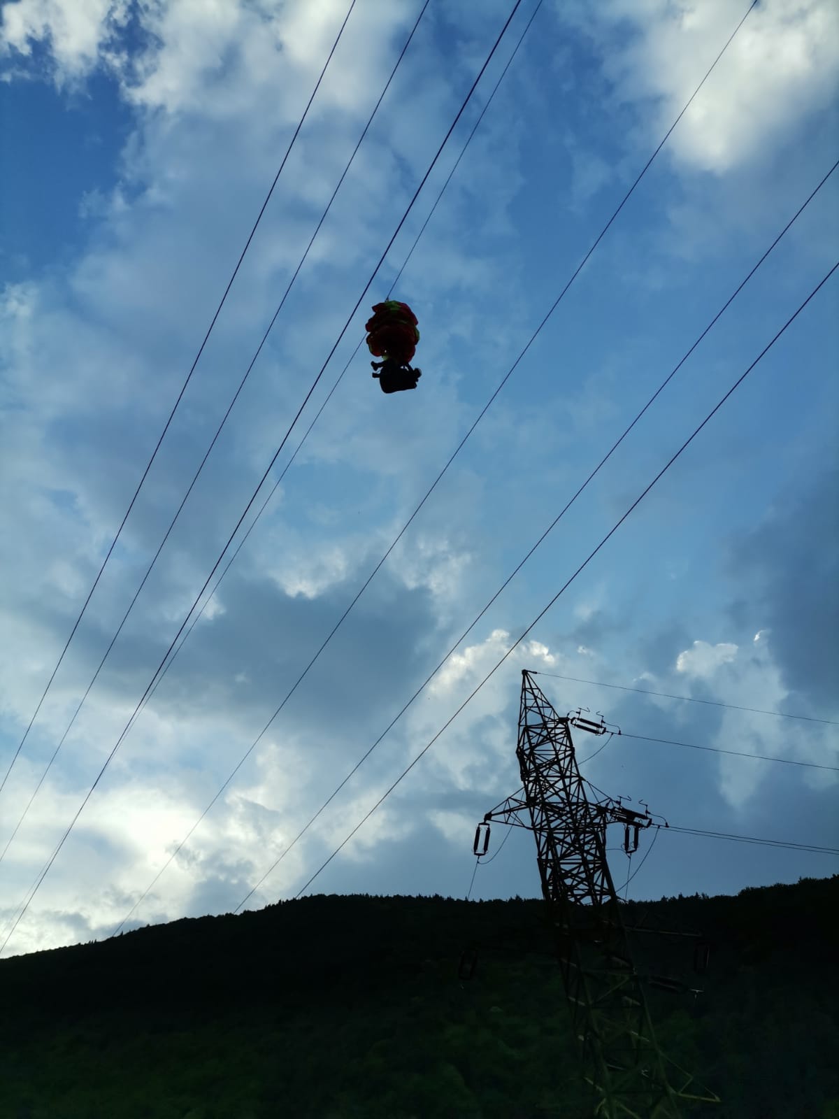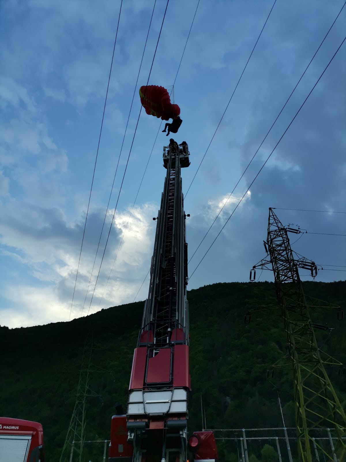 “Parapantistul suspendat de firele de curent, la aproximativ 20 de metri înălţime, a ajuns în siguranţă la sol. Echipajul de pompieri a utilizat autoscara pentru a ajunge la bărbat”, anunță Inspectoratul pentru Situaţii de Urgenţă Hunedoara.