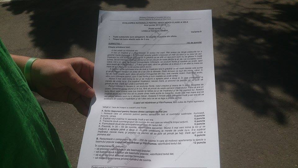 Primul subiect a constat într-un fragment din Lupul cel năzdrăvan și Făt Frumos, de Petre Ispirescu, iar cel de-al doilea subiect a fost un text, extras dintr-un articol de presă, despre celebrarea iei românești.