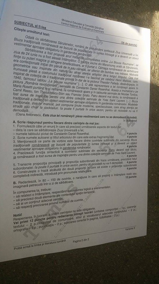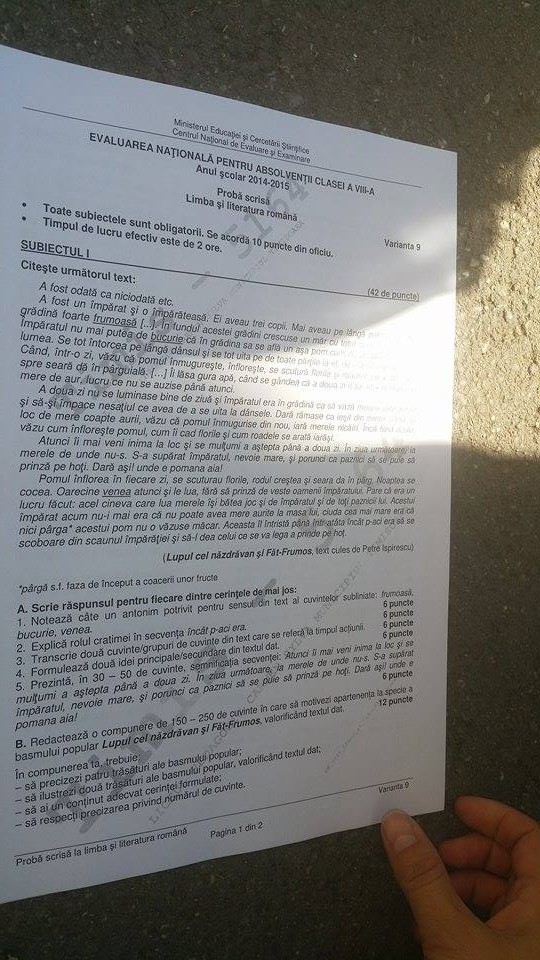 Prima probă dintre cele pe care trebuie să le susţină a fost cea de Limba şi Literatura Română, examen scris. Adolescenții au avut la dispoziție două ore pentru a finaliza examenul.
