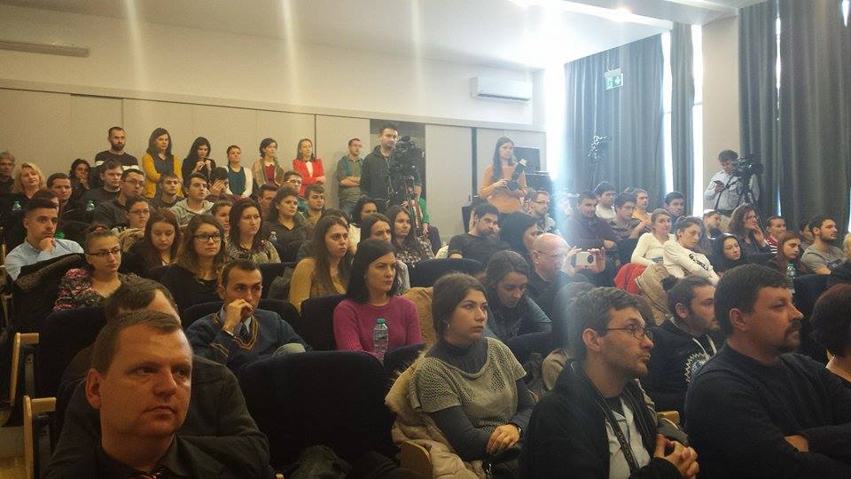 Zeci de tineri au participat, vineri, la conferința pentru orientarea în carieră susținută de cosmonatul român Dumitru Prunariu, la Universitatea de Vest din Timișoara.