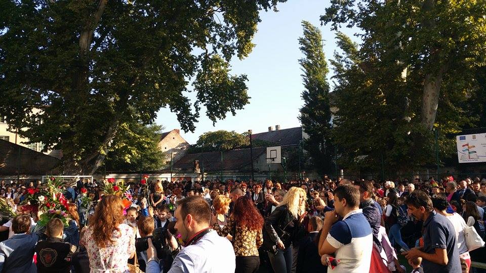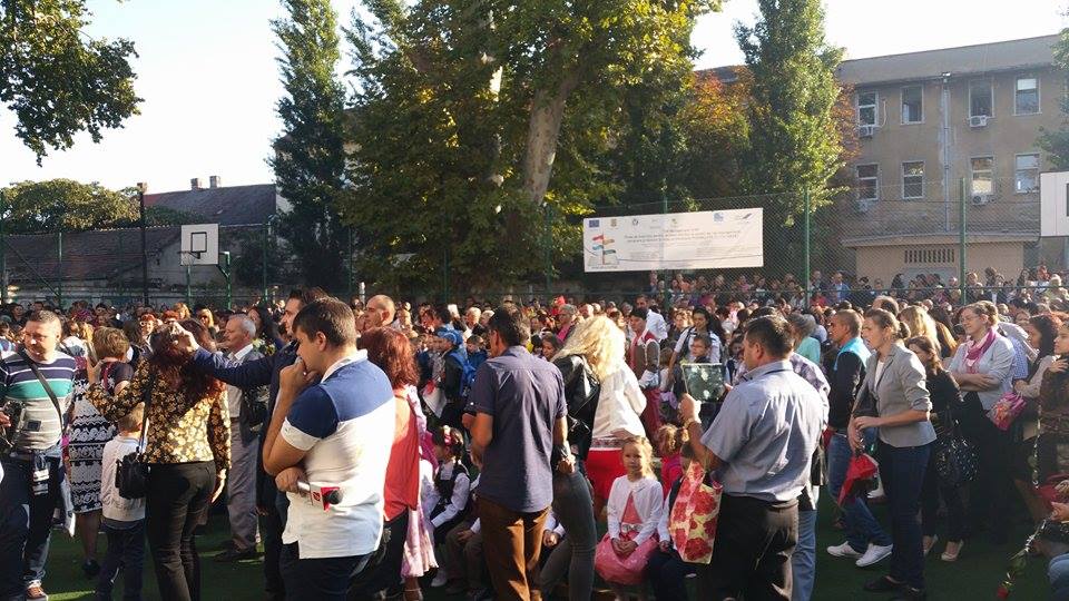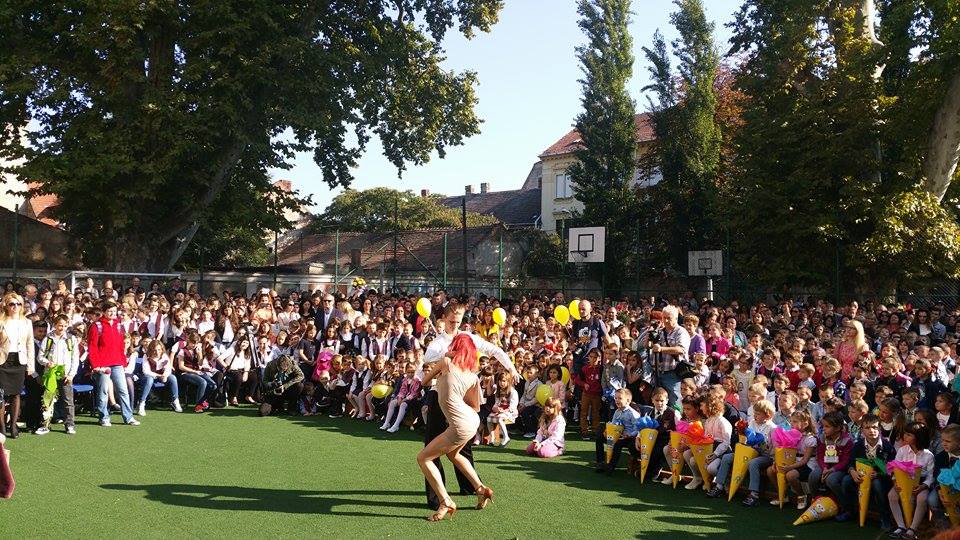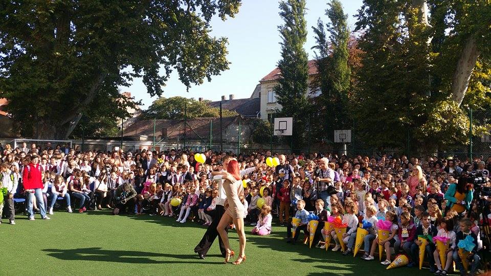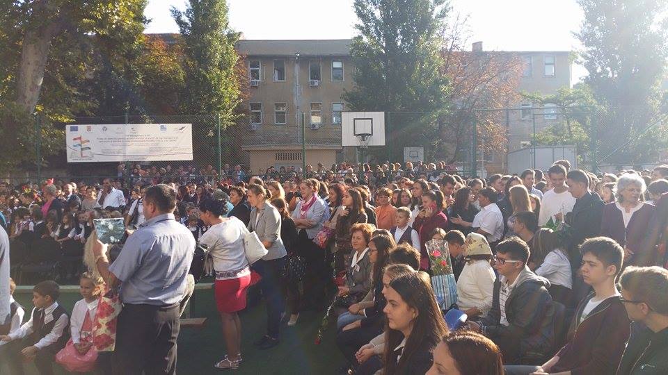 2450 de elevi încep astăzi anul școlar 2015-2016, iar la festivitate au venit părinți, cadre didactice dar și oficialități locale. Toți au avut parte de un spectacol de dans, iar elevii din clasa zero au fost conduși de mână de colegii lor de clasa a V-a, pe sub o cupolă din flori.