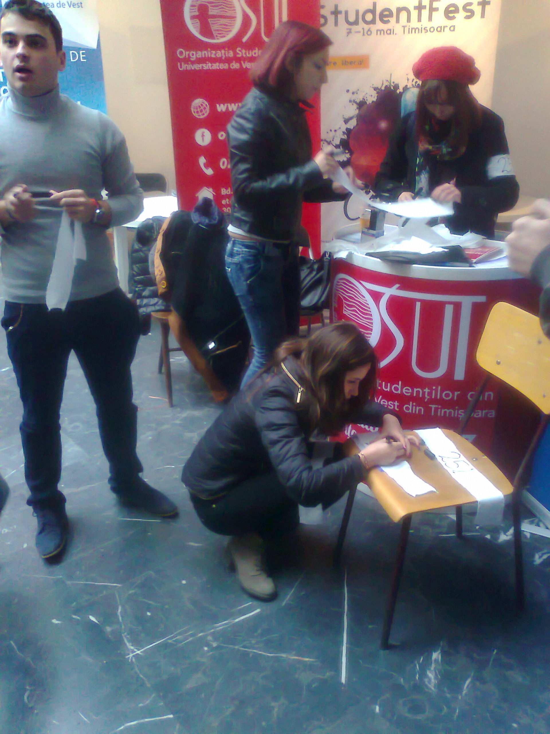 Şi la Timişoara, reprezentanţii Organizaţiei din Universitatea de Vest au împărţit banderole albe.