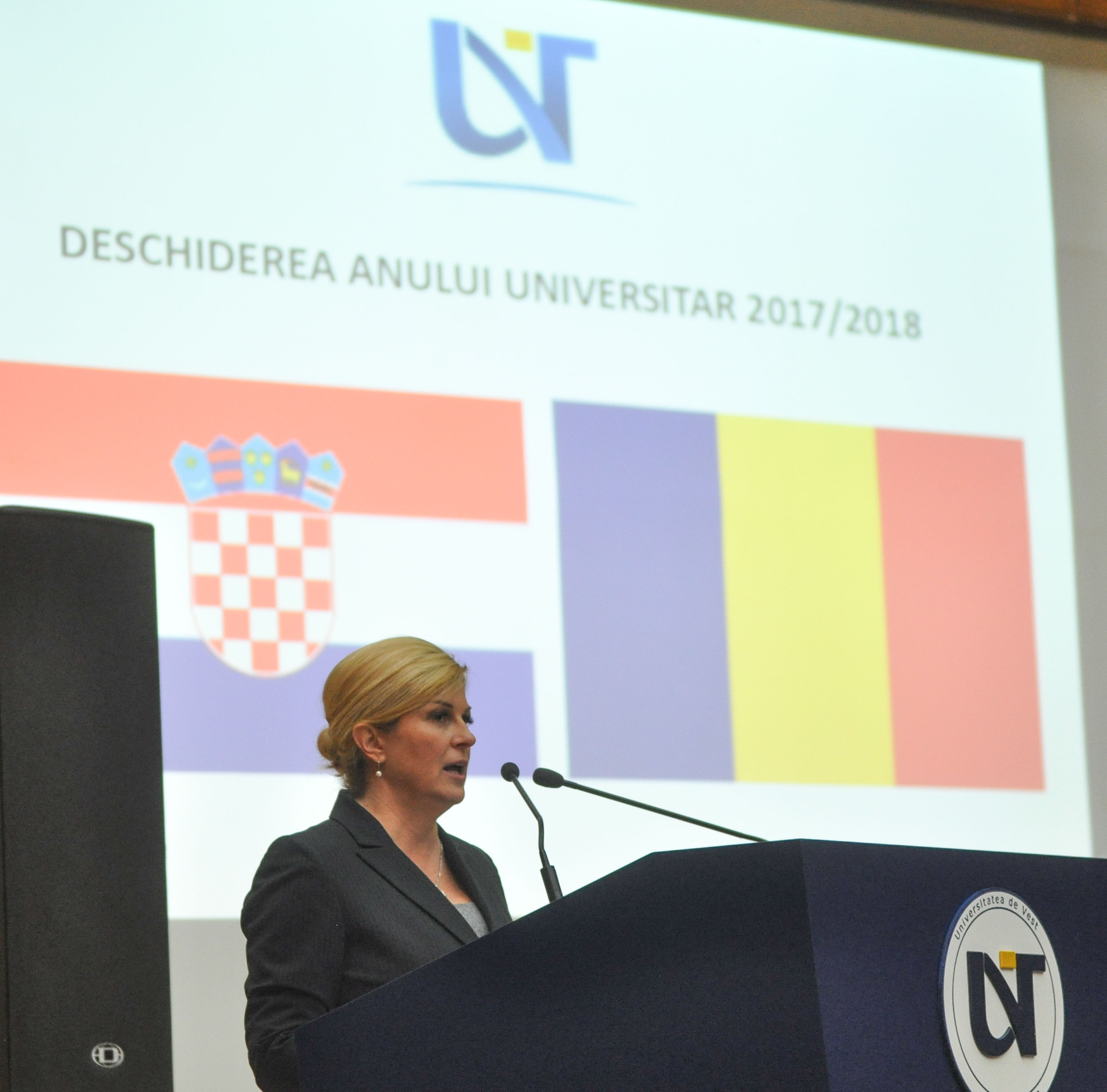 Universitatea de Vest din Timişoara a deschis noul an de studii în prezenţa preşedintelui croat, Kolinda Grabar – Kitarovic. Cu aceeaşi ocazie a fost deschis un Lectorat de limba croată în cadrul  Facultăţii de Litere Istorie Teologie.
