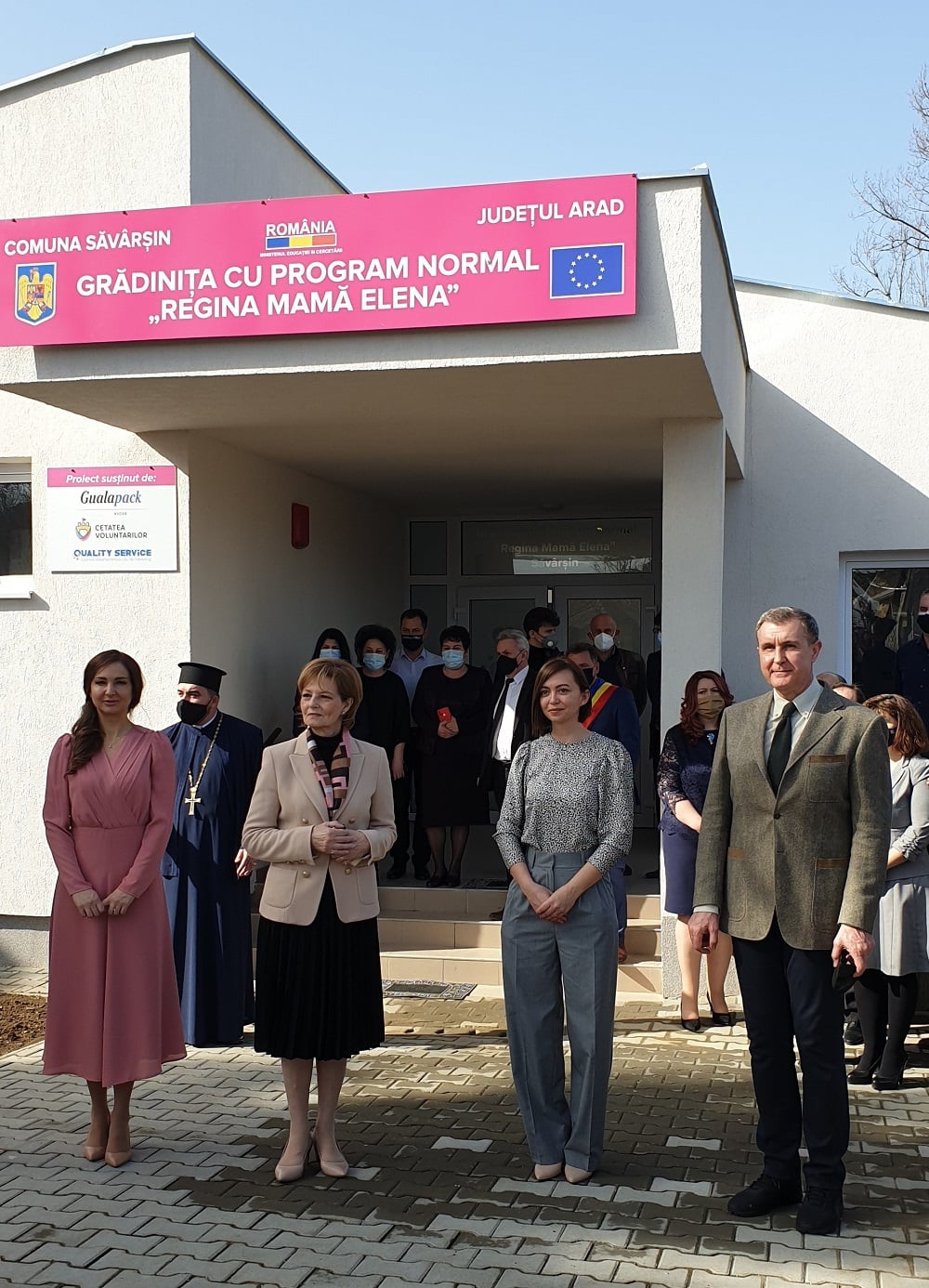 O grădiniţă cu numele ‘Regina-Mamă Elena’, construită cu fonduri europene, a fost inaugurată în localitatea Săvârşin, în prezenţa Custodelui Coroanei, Margareta, şi a autorităţilor locale.