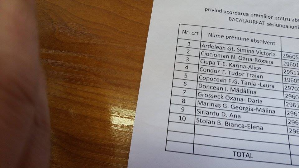 Patru  absolvenţi de gimnaziu cu media 10 la Evaluarea Naţională au primit câte 1.000 de lei şi 10 tineri cu note maxime la examenul de Bacalaureat, câte 3.000 lei.