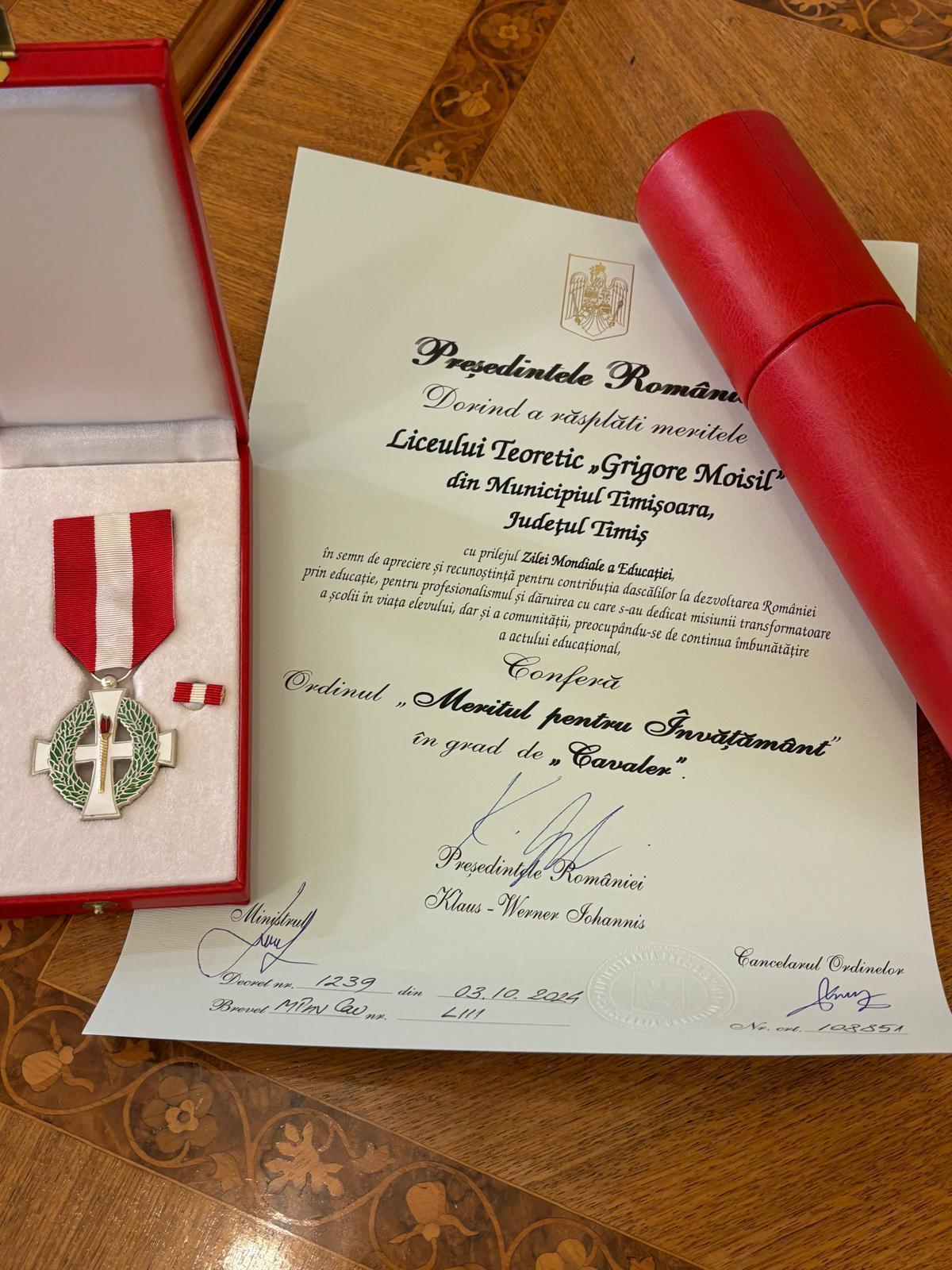 De asemenea, Liceul Teoretic “Grigore Moisil” a primit „Meritul pentru Învățământ” în grad de Cavaler.